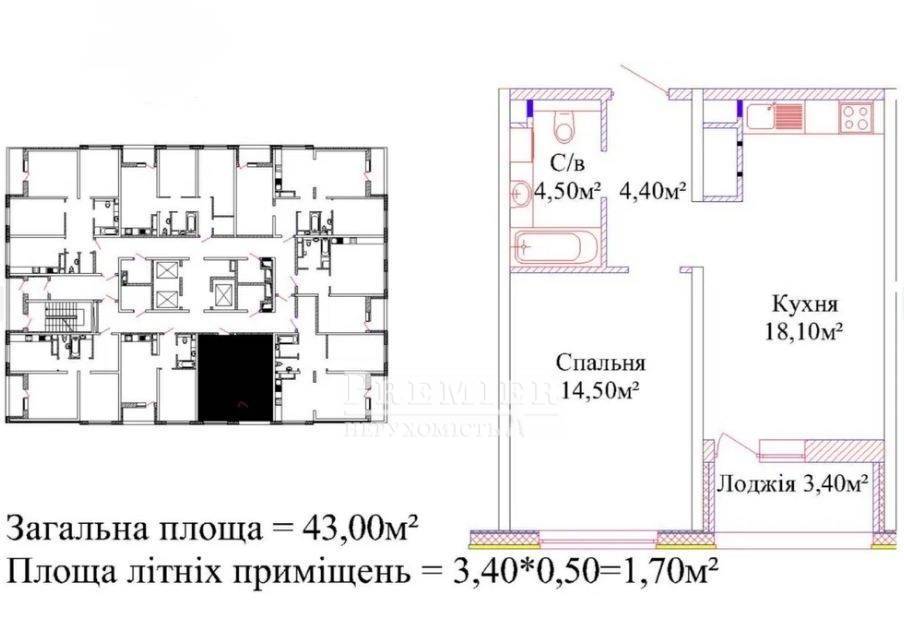 43 м2