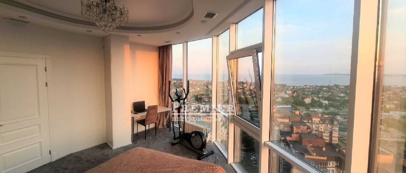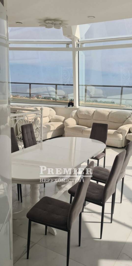 Предлагается к продаже Четырехкомнатная квартира с 2-мя террасами. Пентхаус 2 этажа. Шикарный вид на море и 2 лимана. Просторная кухня студия с выходом на 2 террасы. 3-ри раздельные комнаты (2-ва детских спальни и 1 взрослая). 2 санузла. Джакузи. Есть шкаф-комната под лестницей. Во дворе дома большая детская площадка, услуги нотариуса, аптека, салон красоты, Центр развития ребенка. Тихий район. Проход к морю 15 минут пешком. Школа и садик рядом. Закрытая охраняемая территория. Развитая инфраструктура.