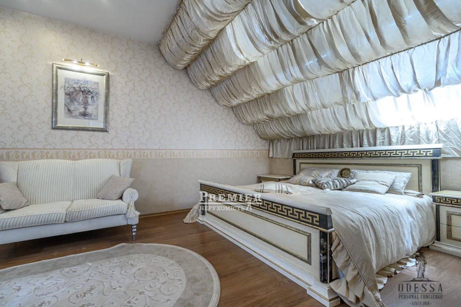 Предлагается к продаже уникальная 5 комнатная двухуровневая квартира с террасой в элитном ЖК Кошкин Дом в Аркадии. Раздельные комнаты (32,4, 19,7, 16,2, 20,6, 28,7, 20,0 кв.м.) плюс большая кухня - гостиная 21,3 кв.м., 3 санузла. Высота потолков - 3,35 м.. Малоквартирный клубный кирпичный дом (5 этажей, всего 4 парадные по 2 квартиры на этаже, 40 квартир в доме). Красивый, уютный дворик в итальянском стиле. В пешей доступности море, Аркадийская аллея с лучшими ресторанами, ночными клубами и пляжами. Охраняемая территория (круглосуточная охрана), камеры видеонаблюдения, подземный паркинг, 1 место в паркинге от квартиры. Автономное отопление: 2 - х контурный газовый котел. Установлена сигнализация. Бесплатная парковка на 2 машиноместа. Изысканный и утончённый дизайнерский ремонт апартаментов. Дорогая мебель и бытовая техника.