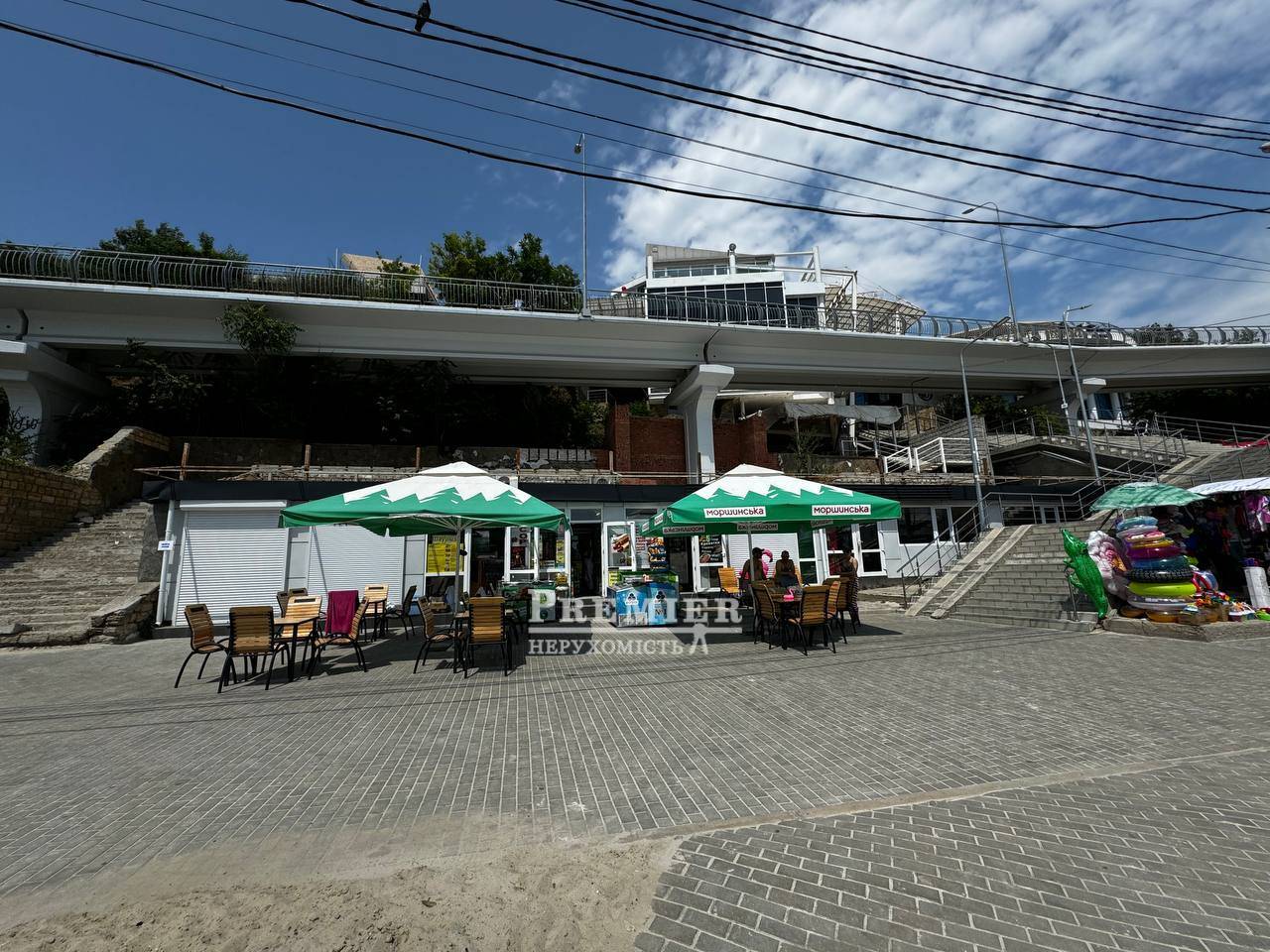Предлагается уникальная возможность приобрести торговые помещения на живописной набережной пляжа Чайка. Комплексы расположены по обе стороны лестницы к морю, обеспечены электричеством, водопроводом и канализацией. Это идеальное решение для размещения бизнеса или вложений в недвижимость в одном из самых привлекательных мест у побережья.