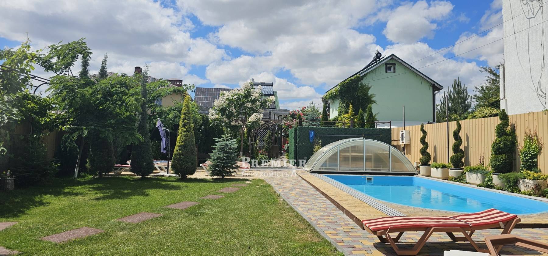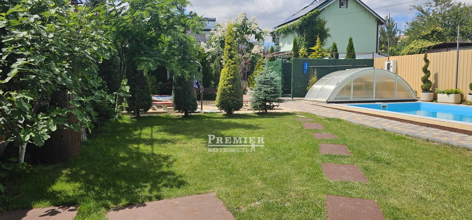 В продаже участок в морском квадрате правильной формы. Участок огорожен по периметру. На участке бассейн, зона отдыха. Посажены хвойные кустарники и деревья.