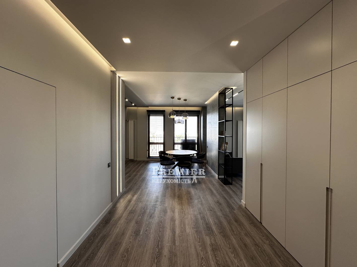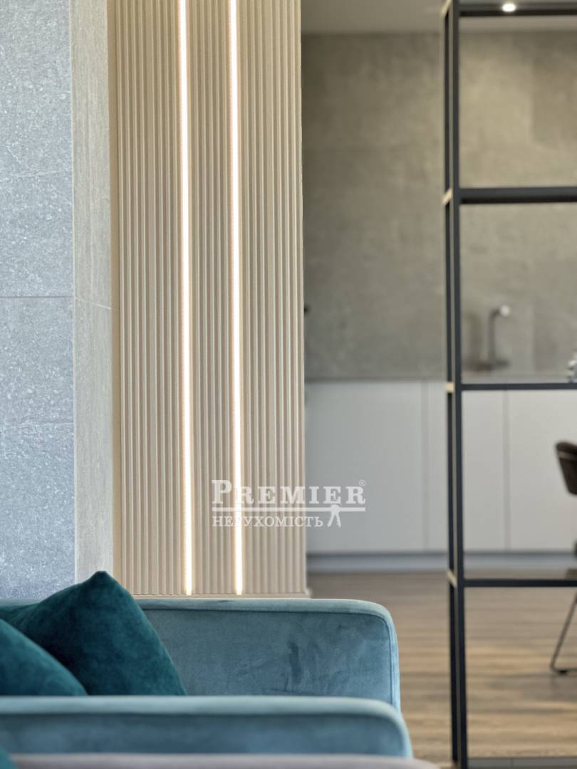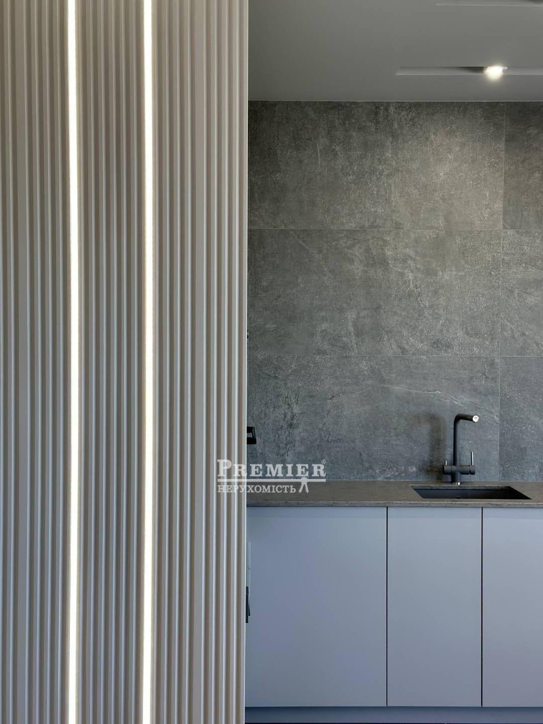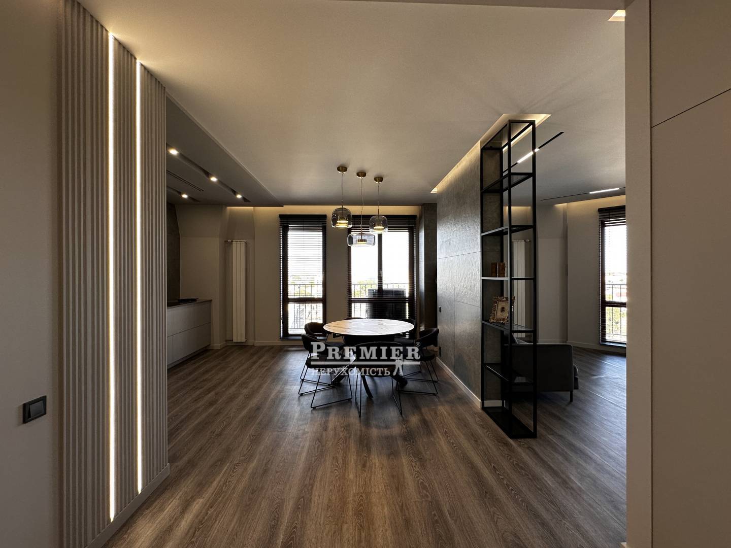 Светлые и просторные комнаты с современным дизайном создают ощущение уюта и роскоши. Просторная кухня-гостиная выполнена в минималистичном стиле с акцентом на премиальные материалы: каменные текстуры, встроенная мебель и продуманное освещение. Обеденная зона с круглым мраморным столом и дизайнерскими светильниками подчеркивает изысканность интерьера.