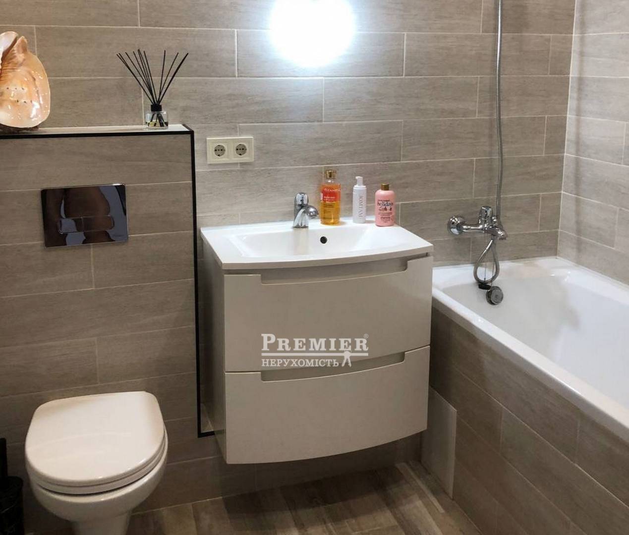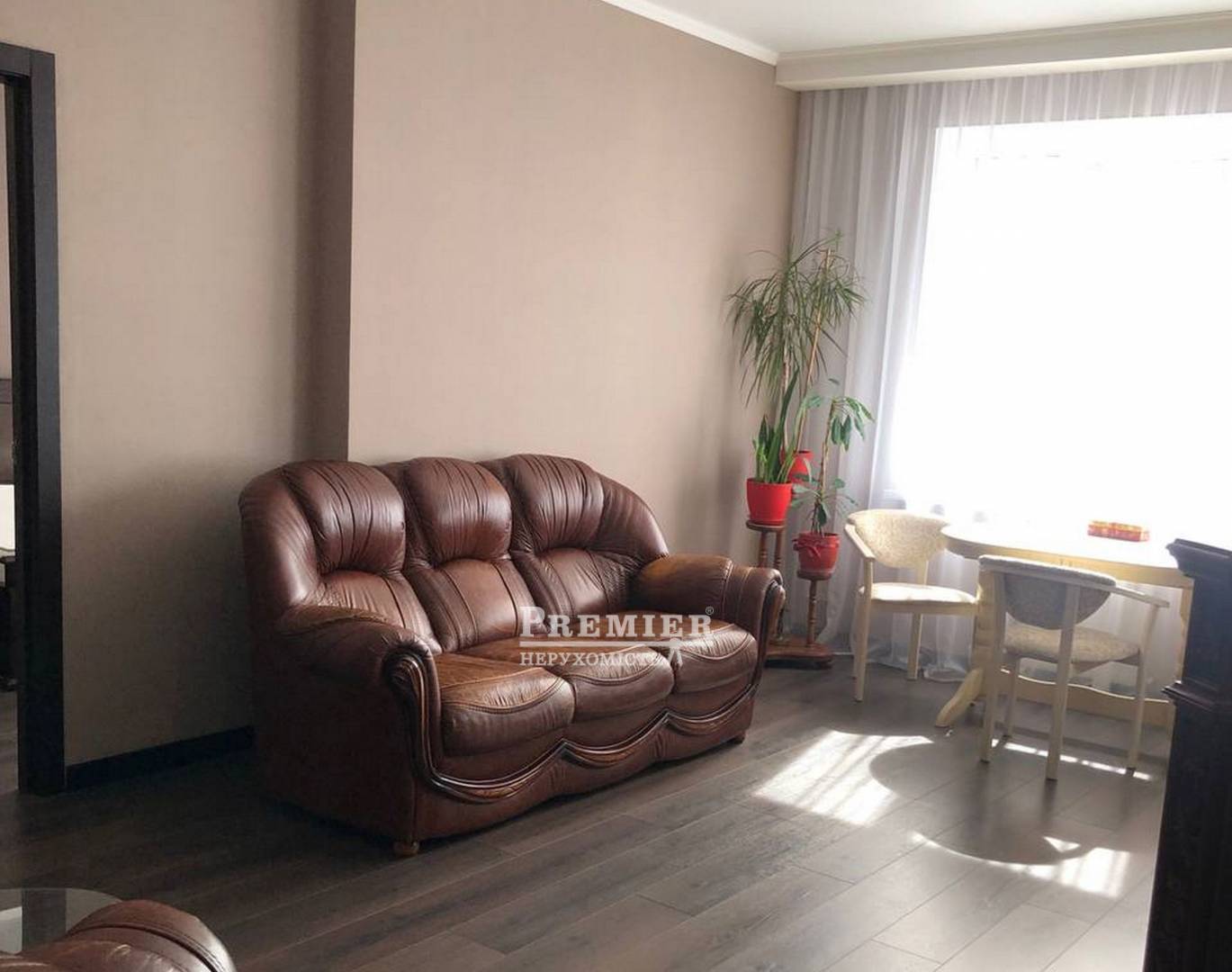 Квартира 64 кв.м. распланирована на большую спальню с гардеробной и гостиную с кухней, санузел, стиральная комната). Квартира большая и светлая, окна выходят во двор на фонтан. Хороший ремонт из дорогих качественных материалов.