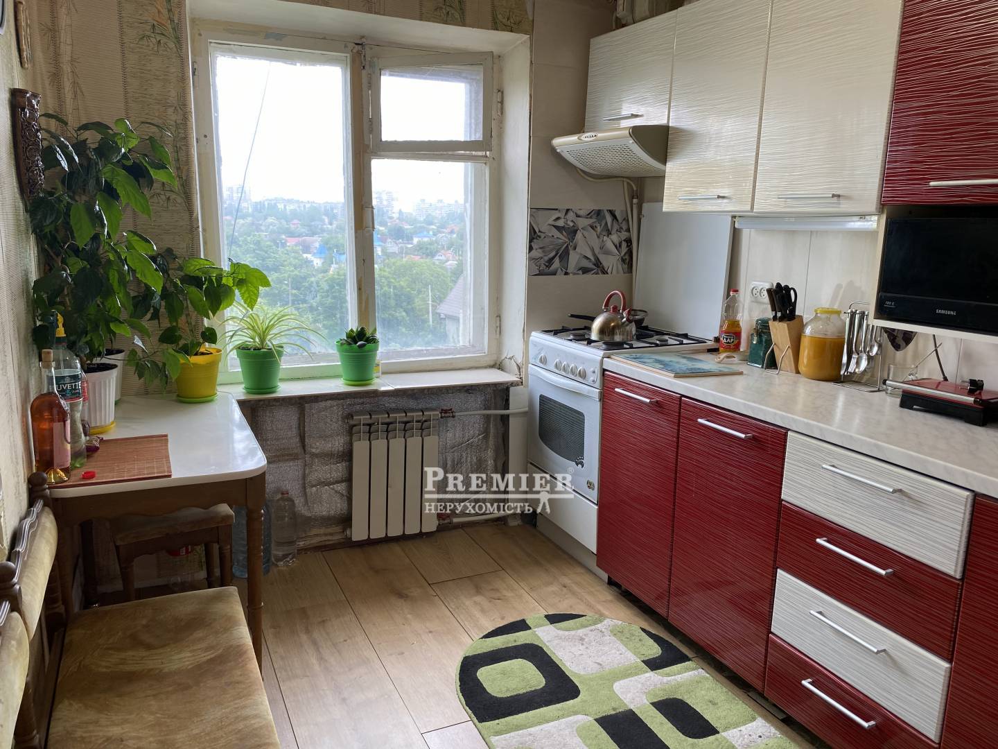 В продаже 2-комнатная квартира, рсположенная на 5 этаже 5-этажного, кирпичного дома с газом. Квартира просторная, с правильной планировкой и раздельными комнатами. Из детской комнаты есть лоджия, санузел совмещенный, но есть возможность его разделить. Кухня 8 метров, правильной квадратной формы, вместительная прихожая со встроенным шкафом. В квартире межкомнатные двери из дерева под лаком, окна металлопластиковые, на полу ламинат и линолеум. Рядом с домом есть продуктовый магазин, до улицы Марсельской пешком идти 10 минут, где расположены базарчик, 2 супермаркета, школа и детский сад.