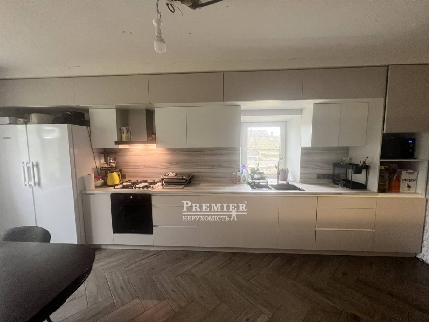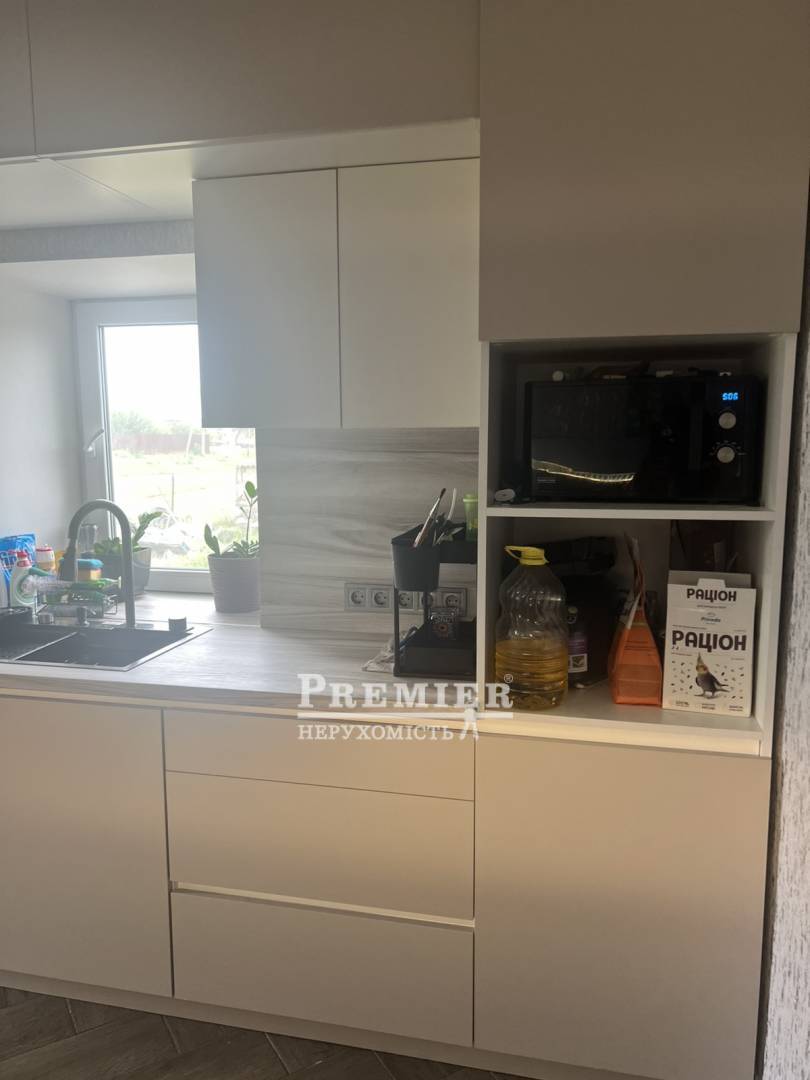 Кухня 19 метров, мечта каждой хозяйки. Частично меблирована. Встроенная кухня. В доме три комнаты, огромный санузел.