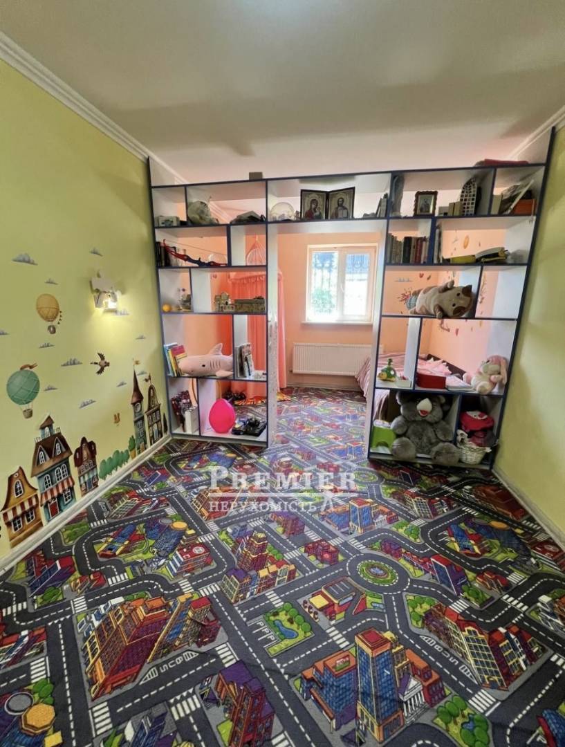В доме: кухня, 2 санузла, 2 гардеробные комнаты, детская, спальня, большой зал и комната для гостей.