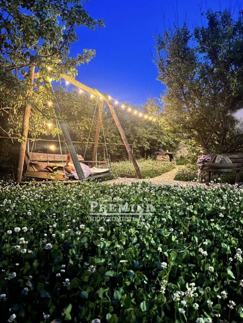 Двор вымощен брусчаткой и усеян клевером, который не требует особого ухода; фруктовые деревья, виноград и прочее.
