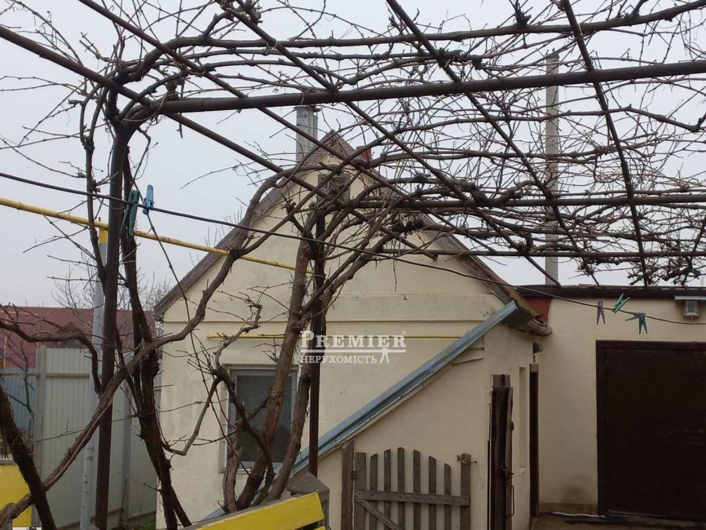 На участке двор с аркой винограда, сад, летний душ, туалет, вольер для собаки, гараж с ямой, летняя кухня.