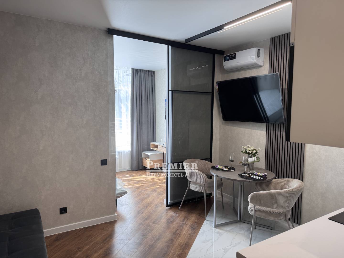 Продается квартира студийного типа в ЖК «Атмосфера», Аркадия. Панорамный вид на город, рядом море. Общая площадь квартиры — 33,55 м².