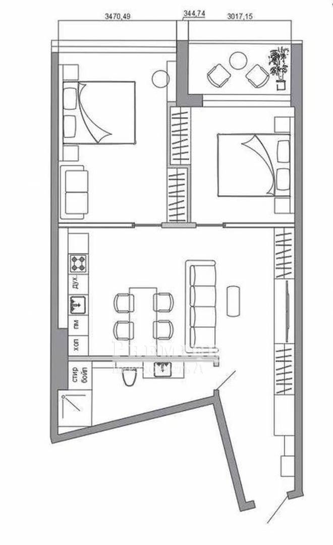Планировка с большими панорамными окнами, кухня-студия, две отдельные спальни, одна из которых с выходом на лоджию. Состояние квартиры от строителей - заведены все коммуникации, счетчики, стяжка, металлопластиковые энергосберегающие окна, отопление, надежная входная бронированная дверь.