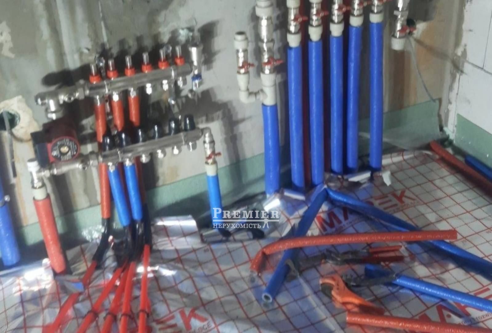 По всему первому этажу теплый водяной пол
