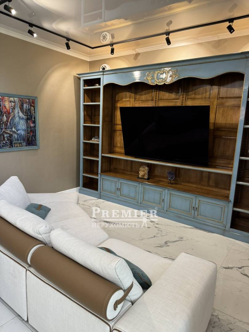 Планировка: 3 спальни гостевая спальня, гостиная, кухня облицована камнем, 3 санузла. Мебель французская ручной работы из натурального дерева, мебель мягкая итальянская Rim. Теплый пол на первом этаже и санузлах, аквариум на 500 литров с живыми рыбами, американская солевая система очистки воды Ecowater по всему дому, отдельный фильтр питьевой воды на кухне, рекуператоры в каждой комнате.