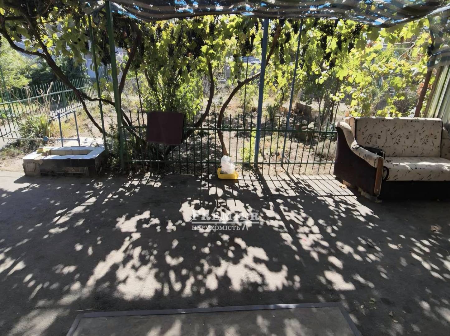 На участке есть плодовые деревья, виноград, хозяйственные постройки.