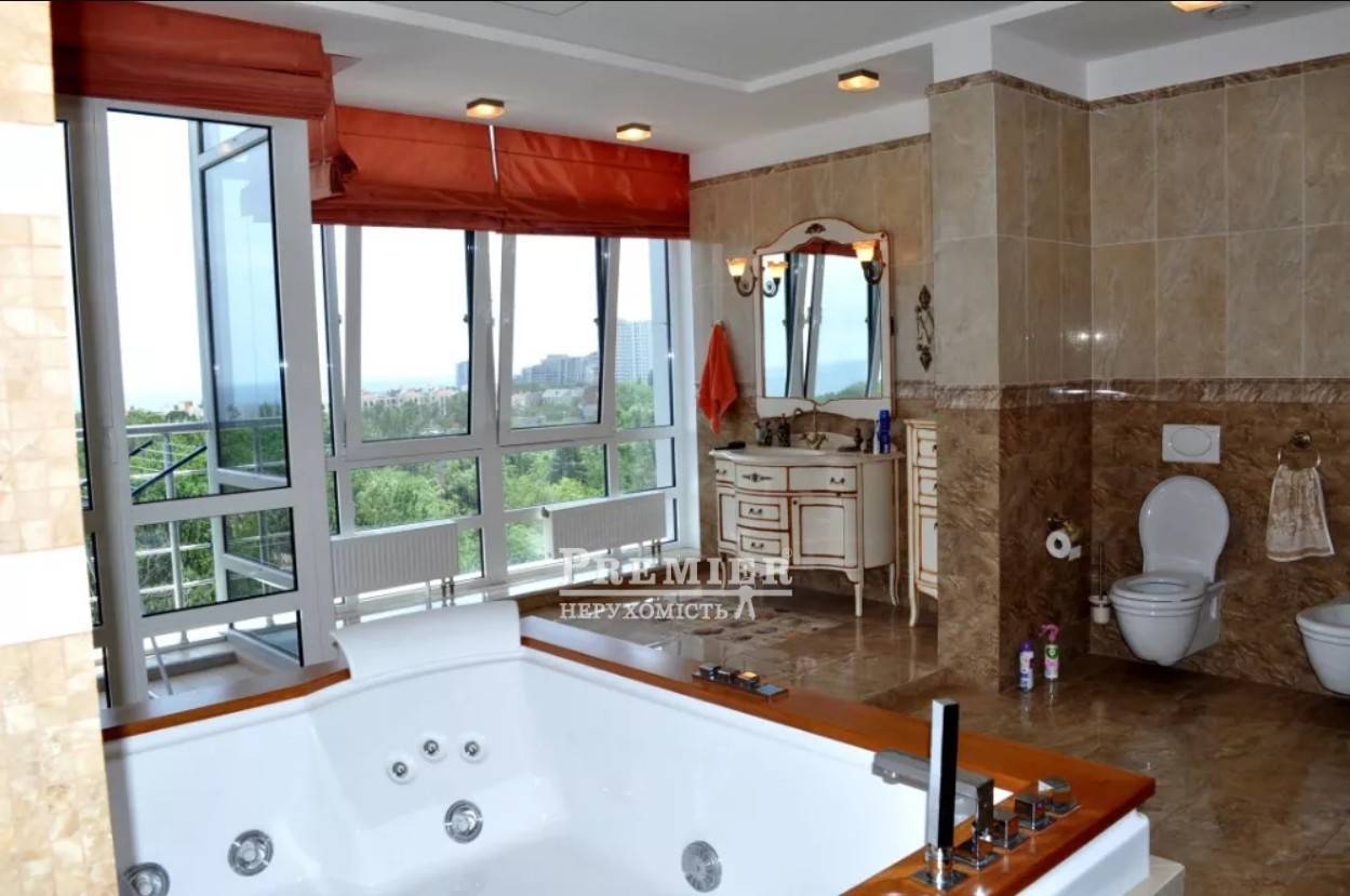 Предлагается к продаже шикарная двухуровневая квартира с дорогим дизайнерским ремонтом элитном районе Французский бульвар, Ботанический сад. Кухня-гостинная - 45 кв.м. с дорогой кухней и встроенной техникой, просторный кабинет, 3 санузла, огромная спастер-спальня с джакузи с видом на море, 3 гардеробные, постирочная, 7 кондиционеров. Ботанический сад, лучшие пляжи Одессы - все в пешей доступности. Есть два паркоместа за отдельную плату. Идеальная квартира для достойной жизни.