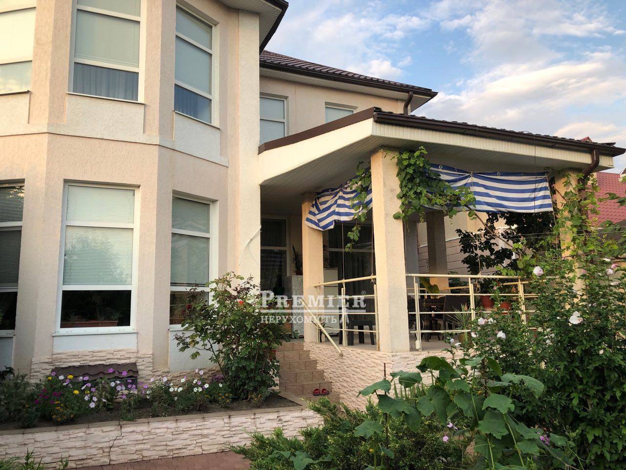 Продам дом на 7 сотках, из крымского ракушечника, толщина стен 70 см, в 3- х уровнях, общ площадь 397 м, 4 спальни, кухня столовая, гостиная, 2 санузла, гараж с секционными воротами, входные ворота с эл.приводом, сигнализация, видеонаблюдение, гор канализация. В цоколе котельная-2 х контурный котёл, ёмкость на 1 т воды, гидрофор, генератор-автомат, бильярдная, теннисный стол, комната отдыха, хозяйственная комната. Фруктовые и хвойные деревья, элитный арочный виноград. На заднем дворе терраса с садовой мебелью и выходом из столовой..Двор на 4 авто, перед домом огромная асфальтированная площадка для гостей. Дом в отличном состоянии, строили для себя. 500 м Золотой берег. Чудесные соседи!!!