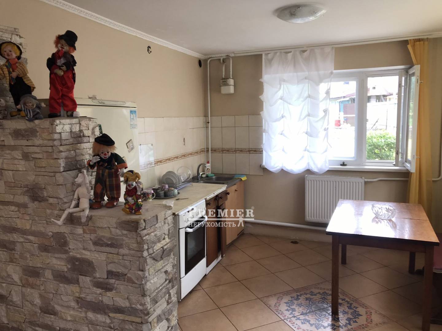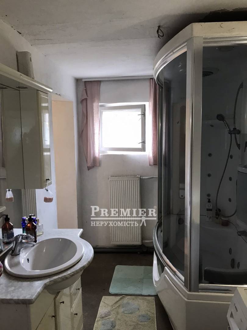 Двоповерховий будинок на асфальтованій вулиці, в безпосередній близькості від ринку, маршруток, магазинів і центру міста. На 1-му поверсі кухня-студія 38 квадрат, санвузол, гараж, котельня і вхід в підвал. 2-й поверх складається з 3-х спалень з терасою і лоджією. 2-й санвузол. Дерев'яні підлоги, стіни поштукатурені і пофарбовані, частково металопластикові вікна, дерев'яні двері хорошої якості. Автономне газове опалення, центральний водопровід і каналізація, кам'яний паркан, ворота, доглянута ділянка. Потрібний косметичний ремонт, можлива обробка 3-го поверху. Будинок підійде для великої родини або проживання з батьками та міської пропискою.