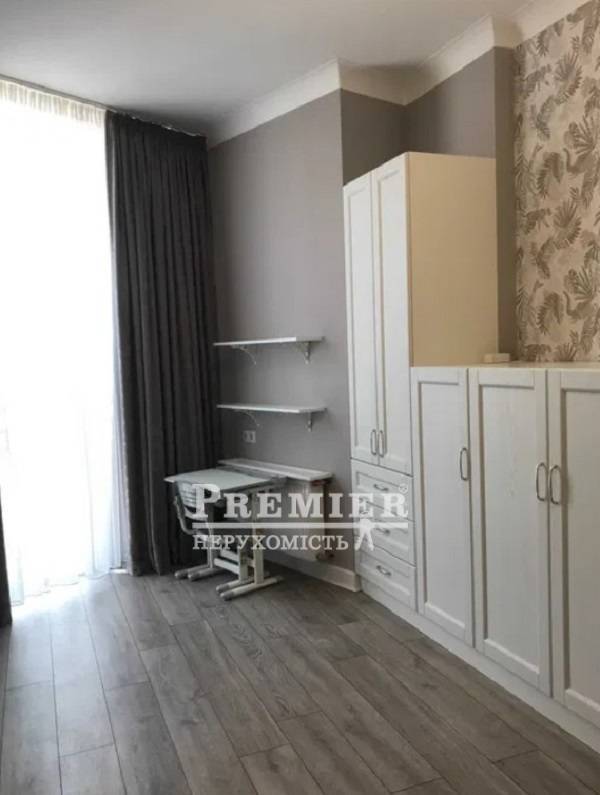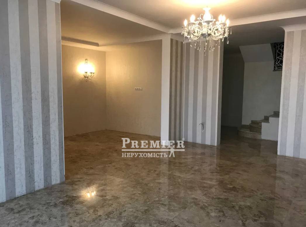 У продажу красива дворівнева квартира в Аркадії. Новий, цегляний будинок. Вид моря. Перший поверх: велика кухня-студія, передпокій, зоновано два кабінети, комора, санвузол. Виконано дорогий ремонт. Пол з натурального мармуру, санвузол облицьований італійської плиткою, встановлена італійська сантехніка, німецькі крани і змішувачі. На стінах дорогі італійські шпалери. Другий поверх: три окремі спальні, передпокій, велика гардеробна, санвузол. Все зроблено зі смаком.