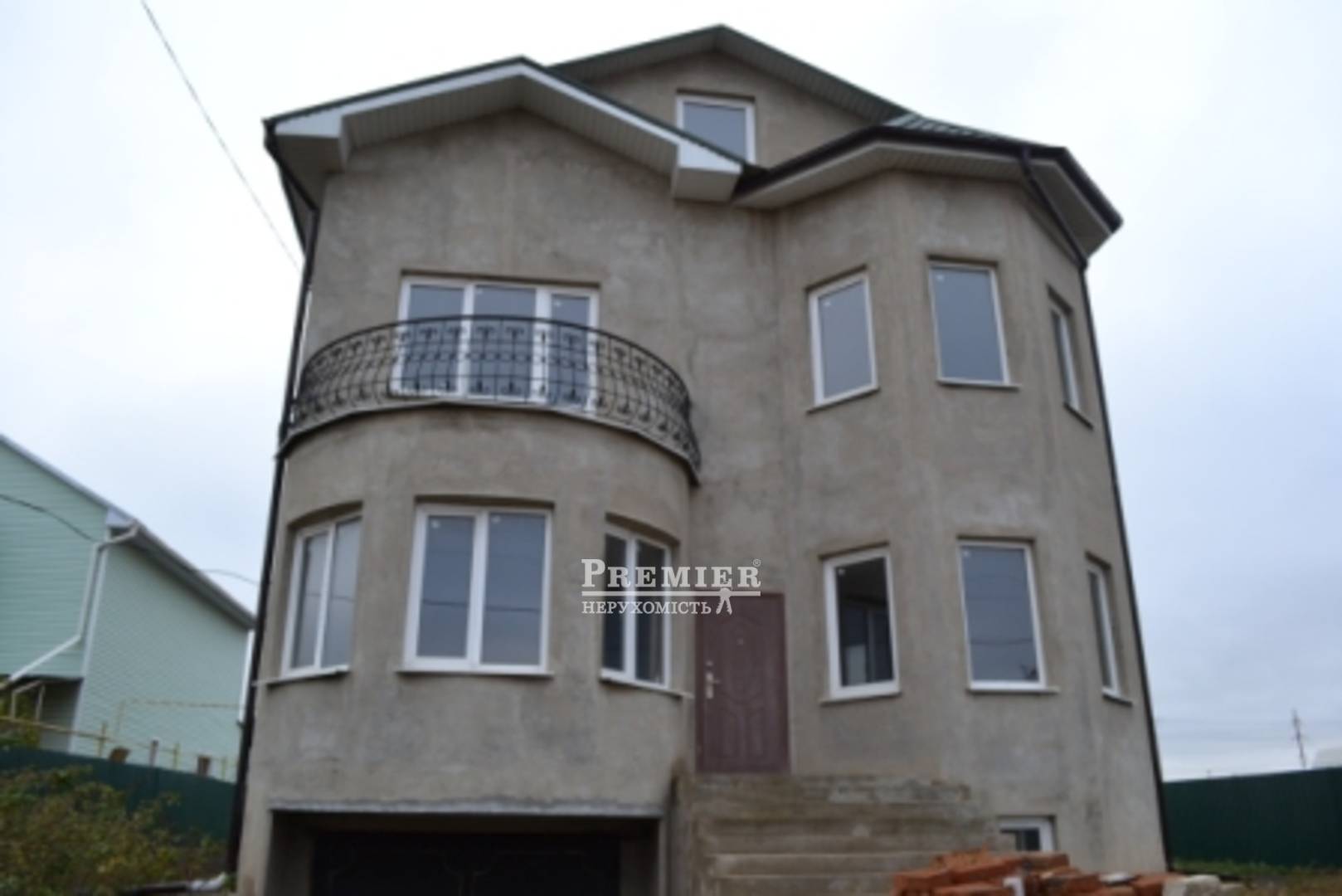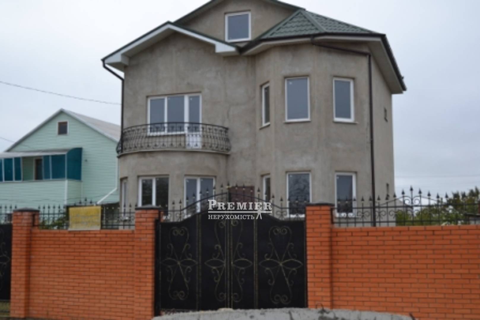 4-х рівневий будинок з пінобетону на 9 сотках землі, загальна площа 226 кв.м. Огороджений кам'яним парканом з червоної цегли, нові металеві ворота, внутрішня і зовнішня штукатурка, дах - металочерепиця, всі комунікації заведені в будинок. Ділянка правильної форми, під'їзд асфальтований, 2 гаража, 15 км. від міста.