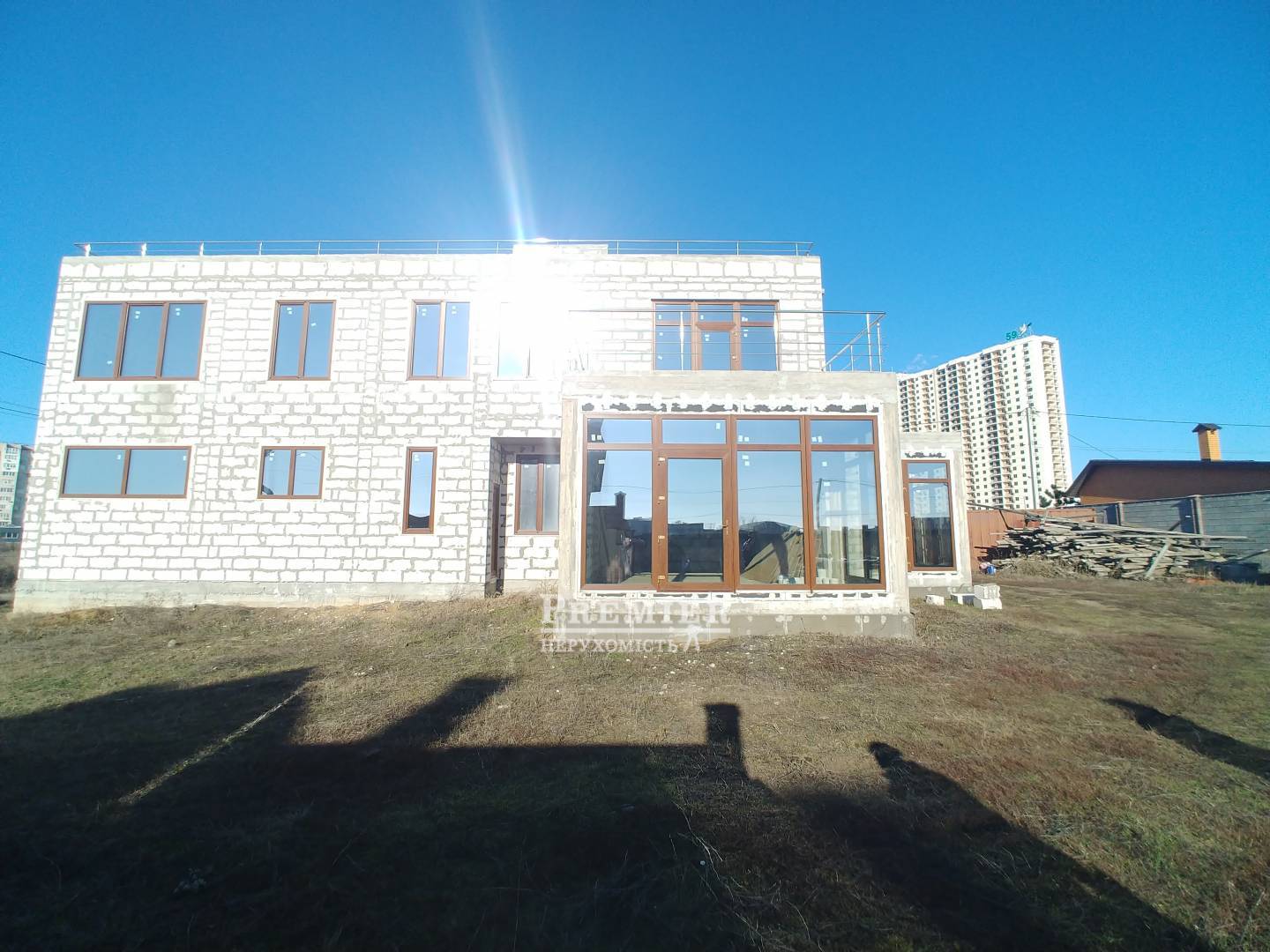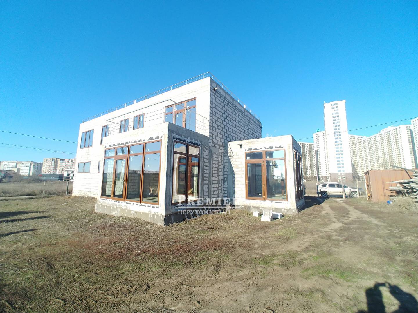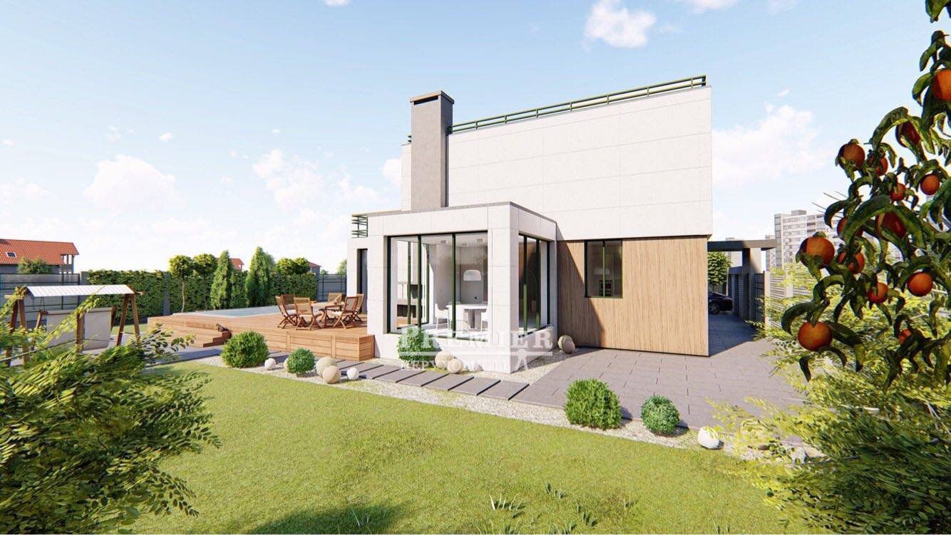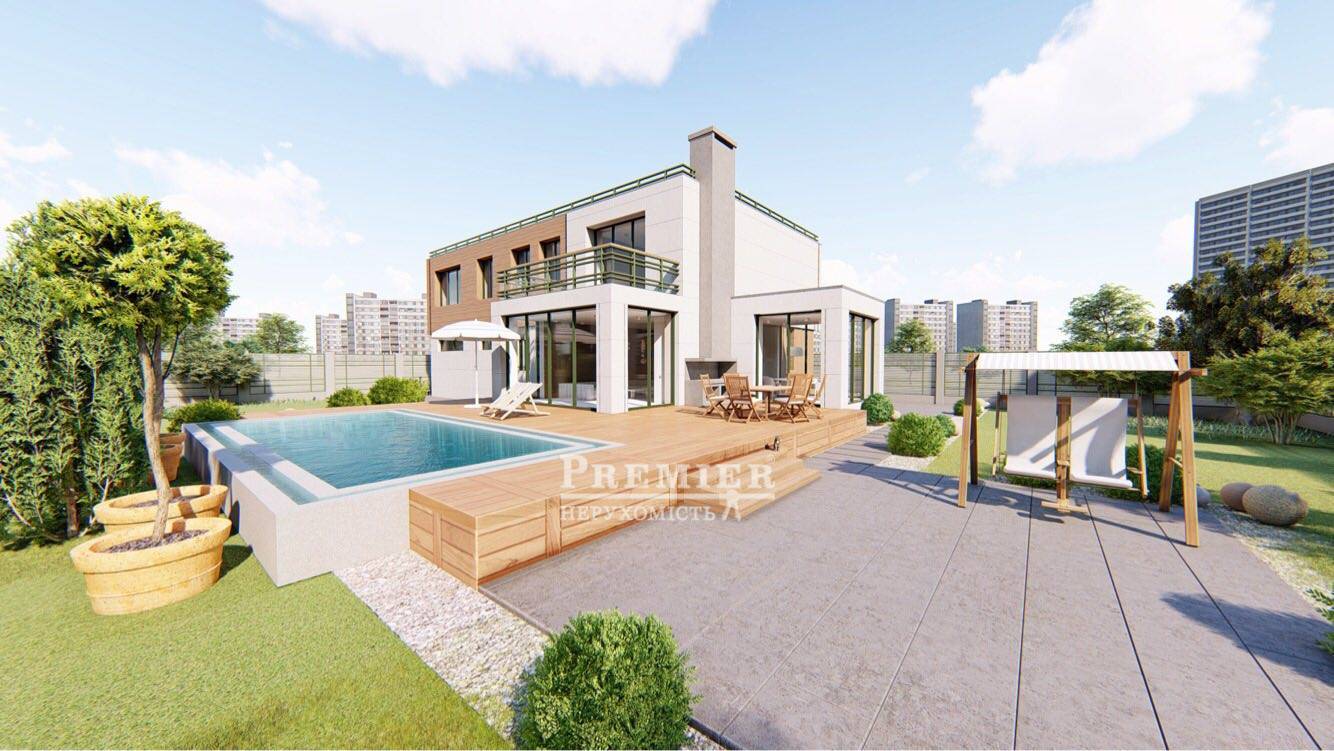 Продам шикарний сучасний будинок в 4 рівня. На даху можна облаштувати місця відпочинку, поставити сонячні батареї тощо. На першому поверсі передпокій, гостьовий санвузол, кухня, вітальня та їдальня з панорамним склінням. Гараж на 2 машини у будинку. Вхід у котельню з гаража та з вулиці. На другому поверсі 4 спальні (11 кв.м.,15,17 та 18 кв.м.), 2 санвузли, вбиральня. Світло в будинку, вода на ділянці, в будинку все підготовлено під комунікації (вода, примусова вентиляція, під тепловий насос для обігріву, під камін). Вікна: профіль А92 Salamander, товщина склопакета 52 мм, 3 скла (енергозберігаюче, сонцезахисне), між склом аргон; гарантія обслуговування. Встановлено сигналізацію. Є паркан, поетапна зйомка будівництва. Професійний дизайн-проект у подарунок!
