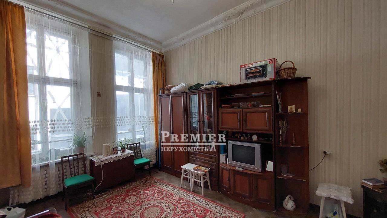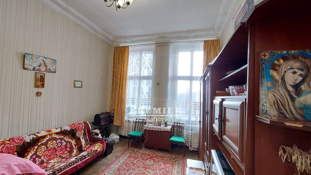 У продажу кімната у комуні, стан – з ремонтом. Високі стелі. Вікна відреставровані (дерев'яні). Загалом у комуні 2 сусіди. Встановлено нові броньовані двері. Замінено всю електропроводку. Розташована на другому поверсі. У парадній мармурові сходи. Чисте, тихе подвір'я. Найцентр міста! Відмінна розв'язка транспорту у будь-який район міста.