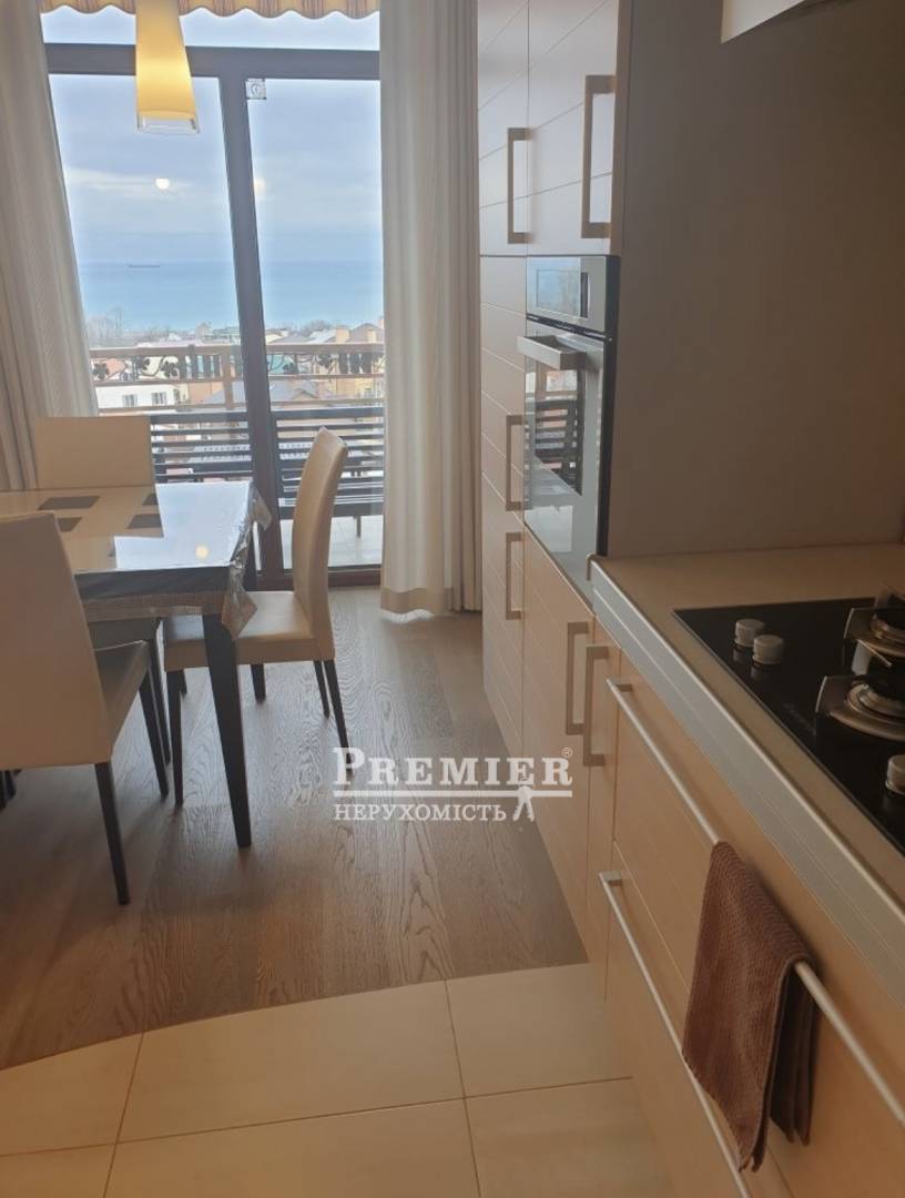 У продажу трикімнатна квартира загальною площею 130 кв.м у новому будинку з червоної цеглини поблизу моря. У квартирі дорогий дизайнерський ремонт, меблі, є відкрита тераса з видом на море з меблями для відпочинку. Два санвузли, прокладена тепла підлога. У всіх кімнатах на підлозі натуральне дерево, є камін, що діє. Територія Доглянута, у дворі дитячий майданчик. Біля будинку садок, школа, багато магазинів.