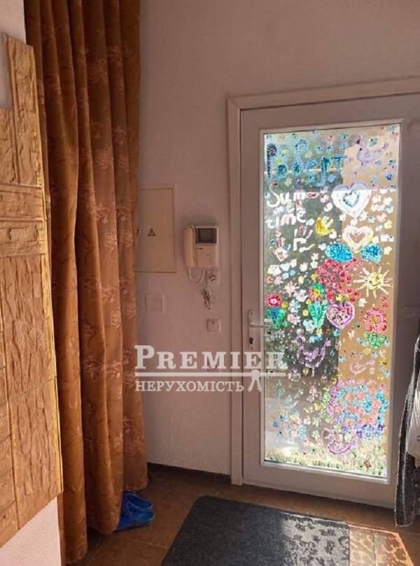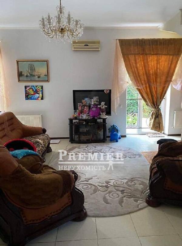 У продажі будинок чотири кімнати, 2 санвузли, 2 балкони, на третьому поверсі зал-студія 67 кв.м. Двоконтурний газовий котел. Кондиціонери, супутникове телебачення, інтернет. Продається з меблями. Вбудована шафа-гардероб. Телевізор, пральна машина, газова плита, духовка, холодильник. Відкрита стоянка, кам'яний паркан, сад.