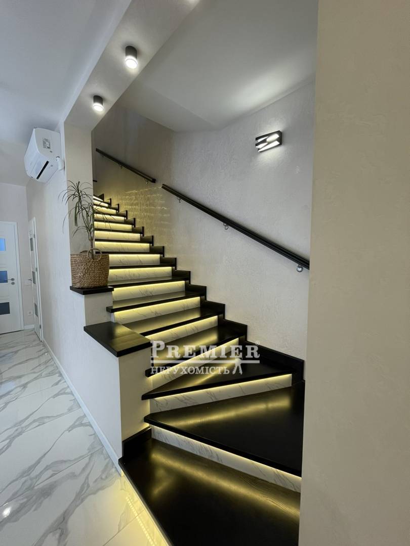 У продажу таунхаус. Загальна площа 110 кв. -два поверхи -п'ять соток землі -місце у дворі під два автомобілі -Зона барбекю -молодий сад -Новий сучасний ремонт робили для себе. -Повністю укомплектований меблями та технікою -Автономне газове опалення тепла підлога. -круглодобова охорона,, Зевс,, камери відеоспостереження навколо будинку -Ворота відкатні на пульті На першому поверсі світла простора кухня вітальня 40 кв.м. з окремим виходом у двір Передпокій з великою шафою, під сходами обладнане приміщення, прально-сушильна машина, додаткова велика холодильна камера та місця для зберігання. Сан.вузол. Другий поверх три кімнати два балкони, сан.вузол. Є горищне приміщення з викочуванням дерев'яними сходами. У будинку два кондиціонери, посудомийна машина, двоконтурний котел. Карнизи всі з діодним підсвічуванням, сходи з натурального дерева з підсвічуванням.