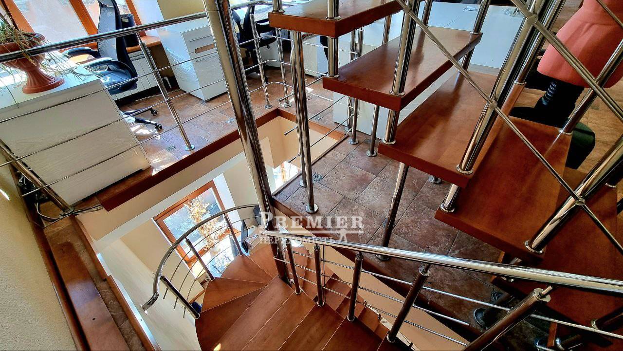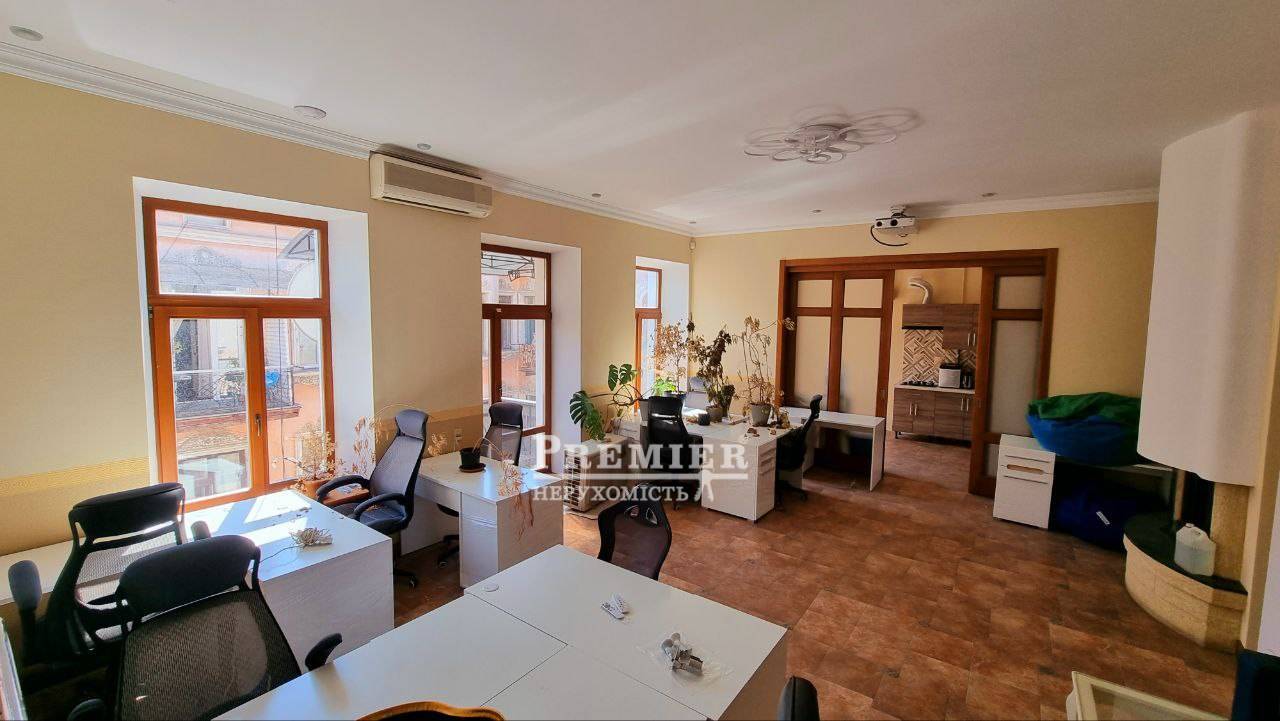Продам офісне приміщення - 214 метрів, житловий фонд (як офіс - ID 185111). , вхід через парадну у дворі, флігель. Три рівні, 3-4-5 (мансарди) поверхи. Ремонт завершено на 99% (потрібно встановити світильники та іншу дрібницю). У дворі 30% квартир та приміщень офісне. Двоконтурний газовий котел, промислові кондиціонери, гідрофор, бак для запасу води, сигналізація, відеоспостереження, розведення під вай-фай, чорний хід. Парадна в нормальному адекватному стані (відреставрована, не євроремонт). Три санвузли, кухня для персоналу, проектор з екраном (вмонтований у стелю в залі на 4 поверсі, опускається автоматично), два балкони (цілком нові), кілька підсобних приміщень, одне з них розплановано в серверну (змонтована стійка, з недорогих). Подвір'я чисте і доглянуте. Вид з вікон офісу – на протилежний дворовий флігель. Ворота двору та хвіртка, двері під'їзду на кодовому замку. Підійде для бізнесу, який не працює з великою кількістю клієнтів. Офіс зроблений для себе. Вільний.-