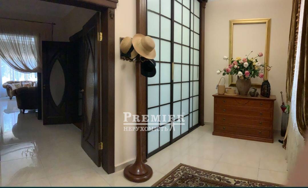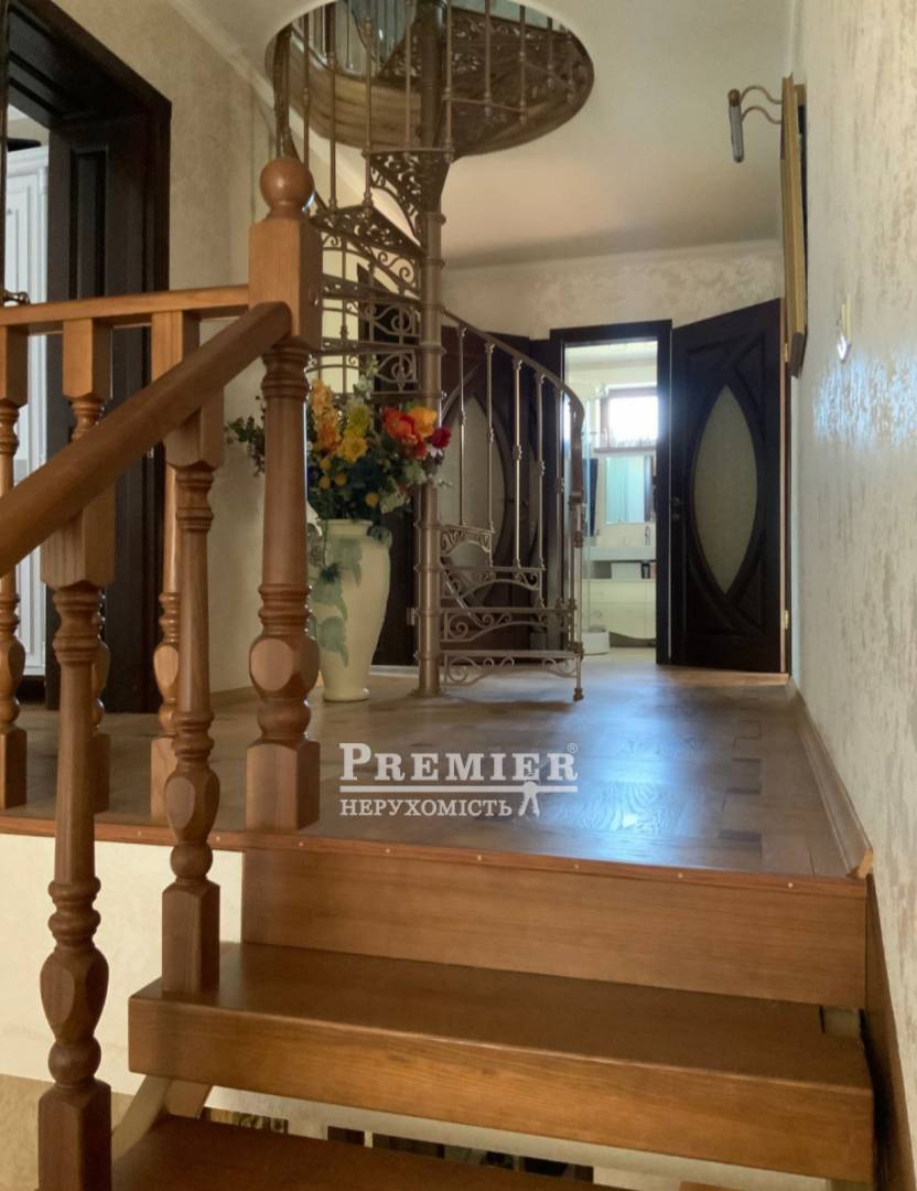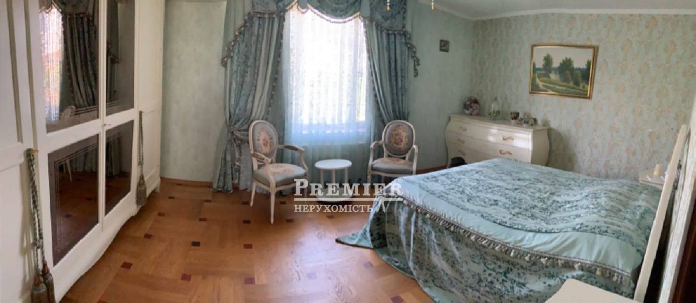 Пропонується до продажу 2-поверховий будинок з мансардою та гостьовим флігелем. У будинку 3 спальні, вбиральня, 2 санвузли, вітальня, їдальня, кухня та передпокій. На мансарді ліжко, диван, бібліотека та ігрова. У гостьовому флігелі 2 спальні, вітальня та санвузол. Під флігелем є великий підвал. Ділянка 10 соток. На ньому розташований будинок, літня кухня, літній санвузол, сад із фруктовими деревами, ягідні чагарники, вічнозелені хвойники та газон. На ділянку 2 в'їзди та хвіртку. Будинок розташований на тихій вулиці з добрими сусідами.