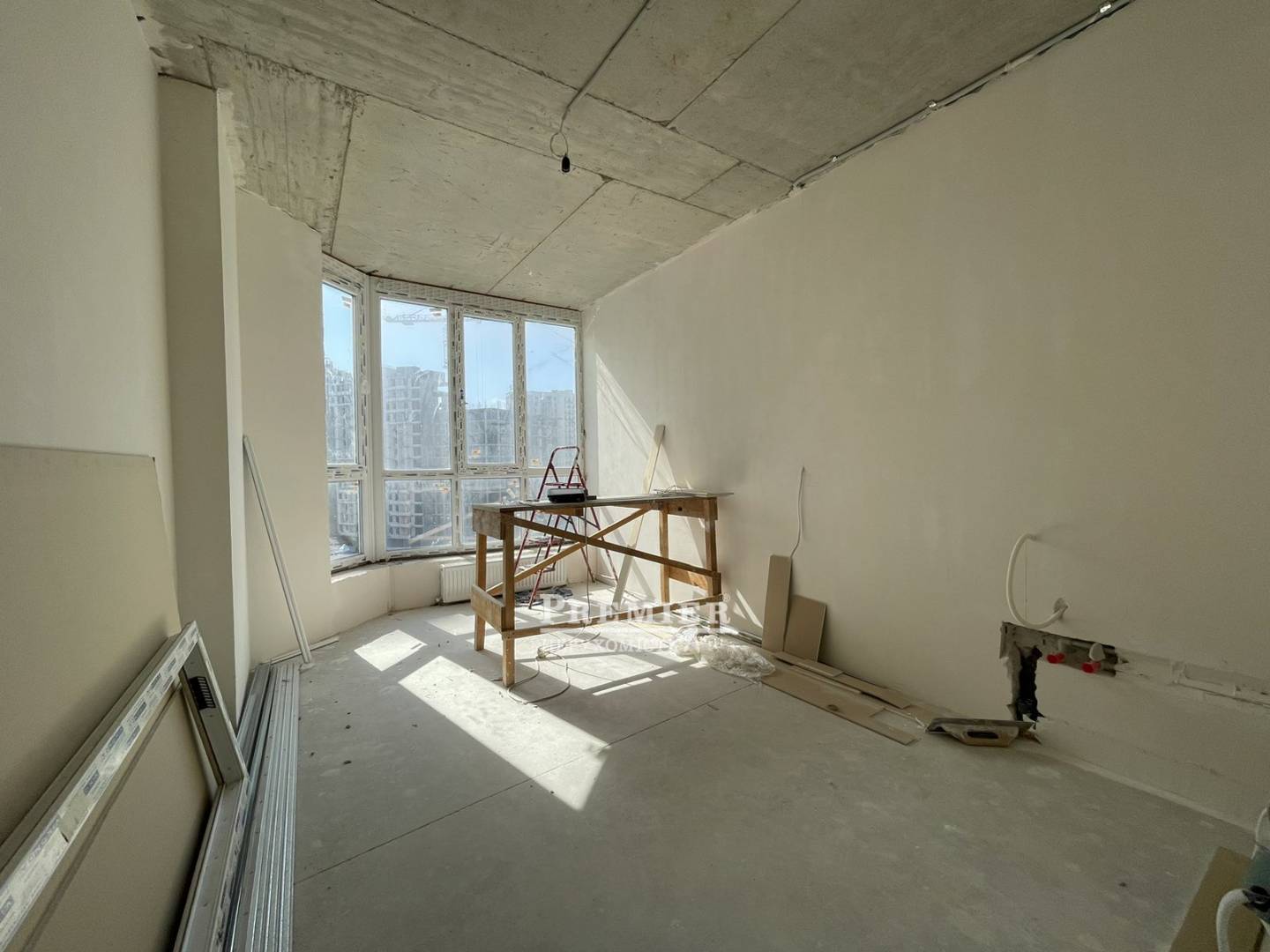 Пропонується до продажу простора 1-кімнатна квартира з розпочатим ремонтом у новому ЖК Акварель. Будинок зданий та заселений. Квартира розташована на 8-му поверсі 17-поверхового будинку. Загальна площа 41 м2. Стан - під чистове оздоблення: виконано розведення електрики, сантехніки, тепла підлога на кухні та в кімнаті, стяжка підлоги, стіни оштукатурені. Найкраще планування в цьому будинку: з гардеробною. Панорамне скління на кухні. У будинку два ліфти, консьєрж-сервіс. Огороджена територія. Дитячий майданчик. Паркінг. Поруч супермаркет Метро, Епіцентр, оптовий ринок, будівельний ринок, школи, дитячі садки.
