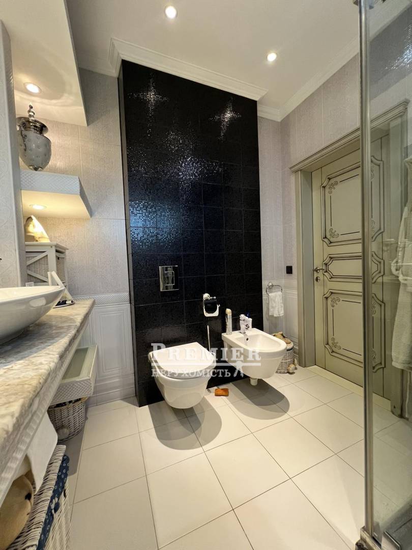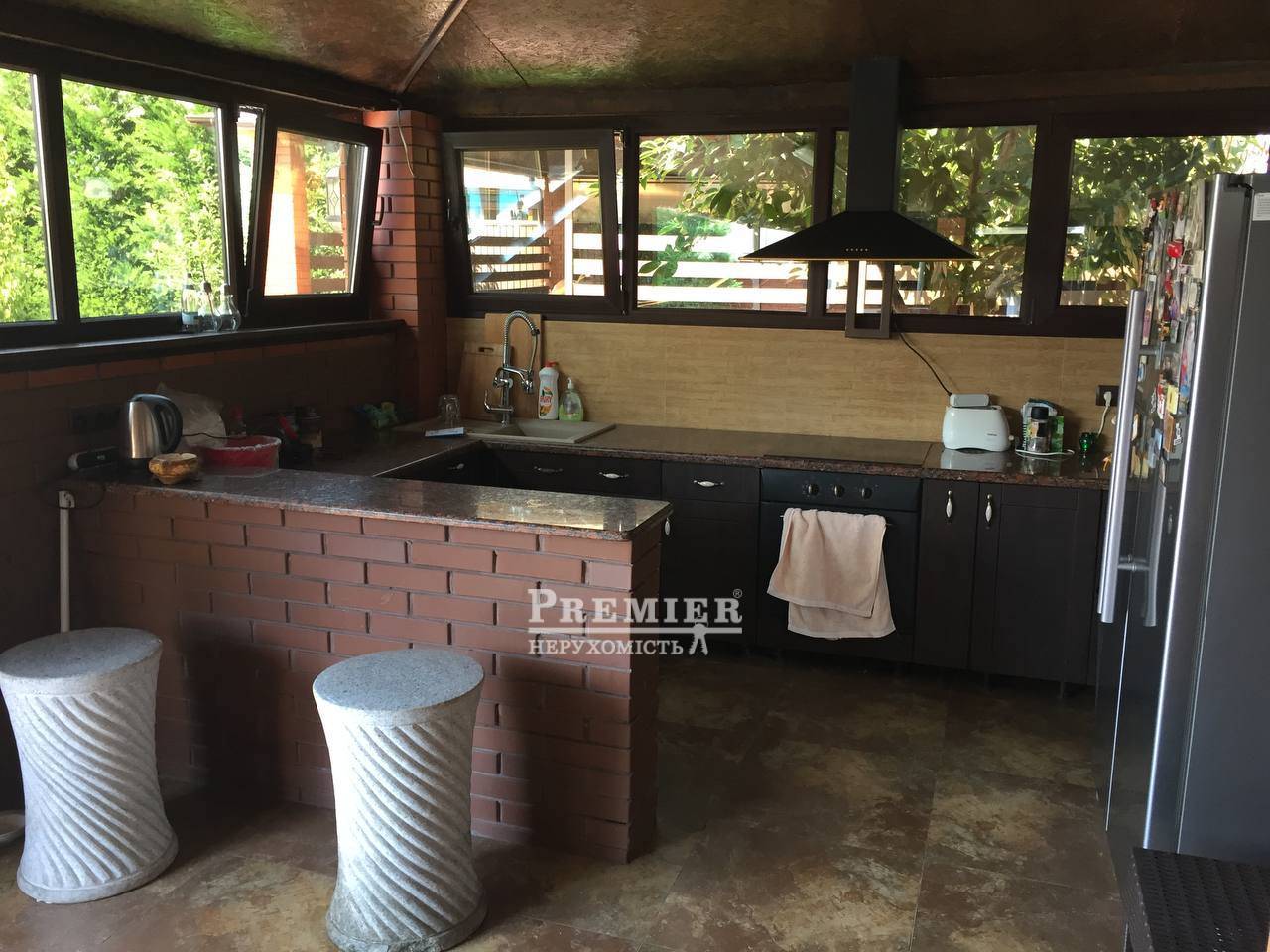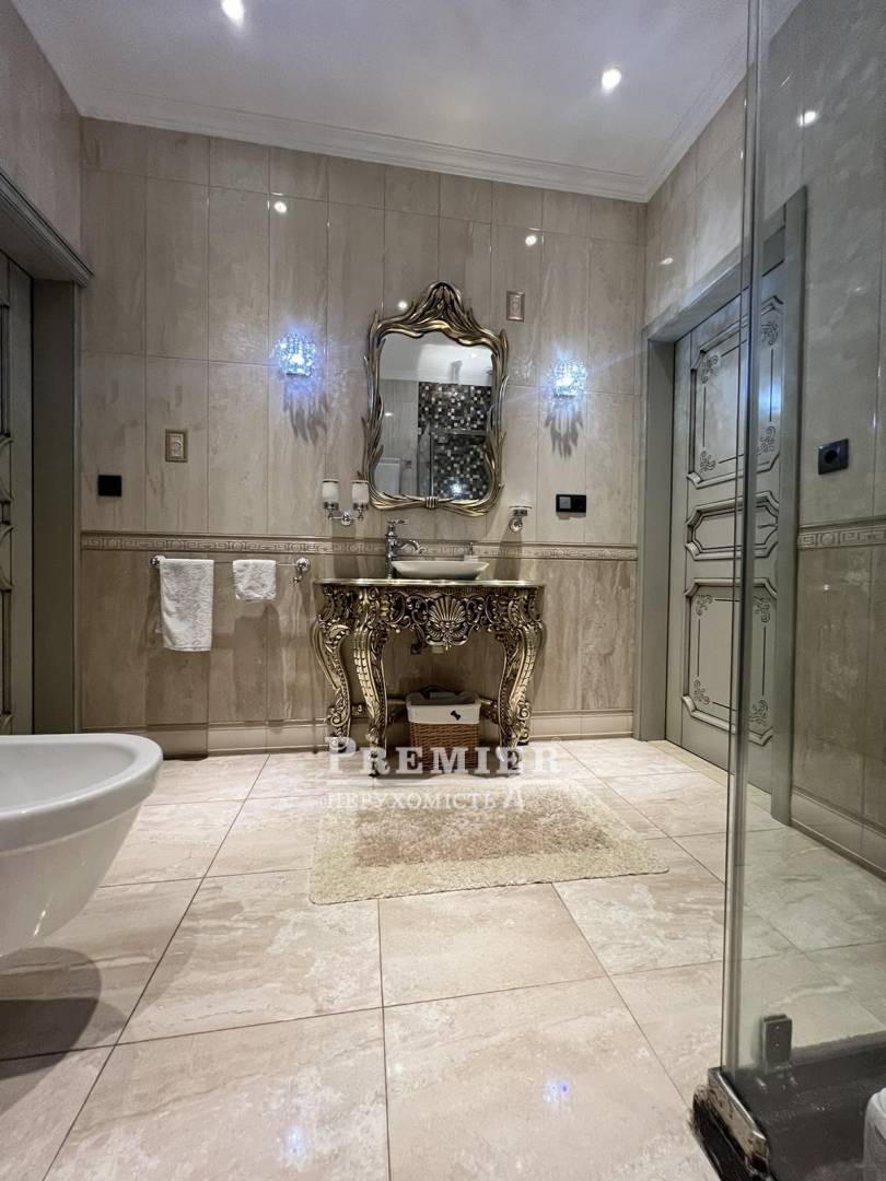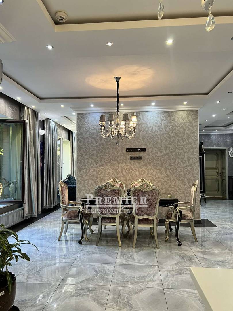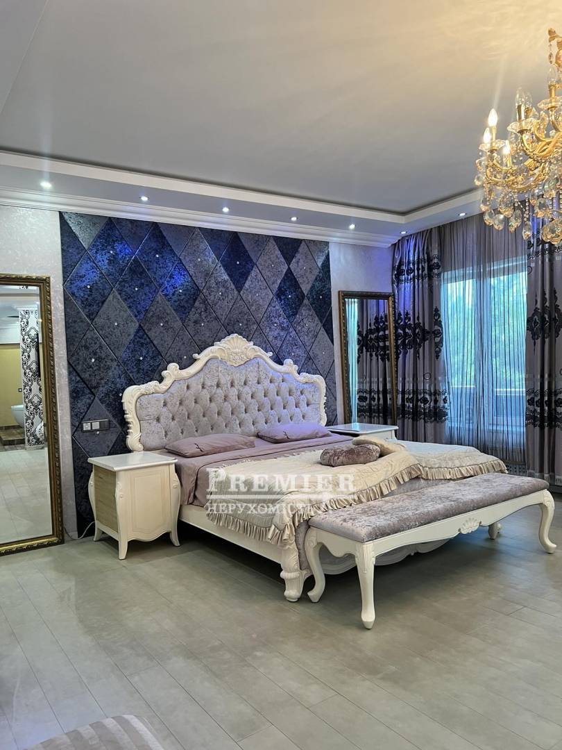 Пропонуються до продажу двоповерховий будинок з натурального каменю в чотири рівні на ділянці 8 сотів. На цокольному поверсі котельня, підсобні приміщення. На першому поверсі кухня – їдальня, дві спальні, пральня, суміжний санвузол. На другому поверсі три спальні, санвузол, одна зі спалень майстер - спальня з гардеробною, санвузлом та джакузі, та веранда під спортзал. Третій рівень: під домашній кінотеатр із акустикою, шумоізоляція. Будинок з черепашника фанерований цілісною червоною цеглою, сходи та цоколь з граніту, підвіконня мармур, є камін. На ділянці літня кухня з вбудованою технікою та меблями, басейн 4*8 кв.м, крите паркування на два автомобілі. Розвинена інфраструктура: поруч зупинка транспорту, супермаркети, магазини, школа, садок. До моря 10 хв. пішки.