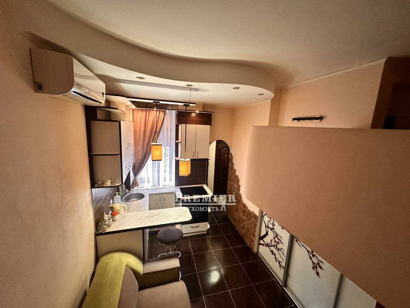 Пропонується до продажу квартира - студія у міцному будинку в районі Пересипського мосту. Квартира на високому першому поверсі. Зроблено сучасний ремонт. Встановлено нові труби на опалення, воду та каналізацію. Є тепла підлога та кондиціонер. Квартира укомплектована меблями та технікою: вбудована кухня (зроблена на замовлення), сенсорна плита, духовка, холодильник, бойлер, ліжко з ортопедичним матрацом, вбудована шафа. Будинок розташований поряд зі сквером, магазином, школою, дитсадком.