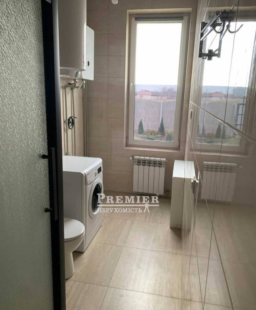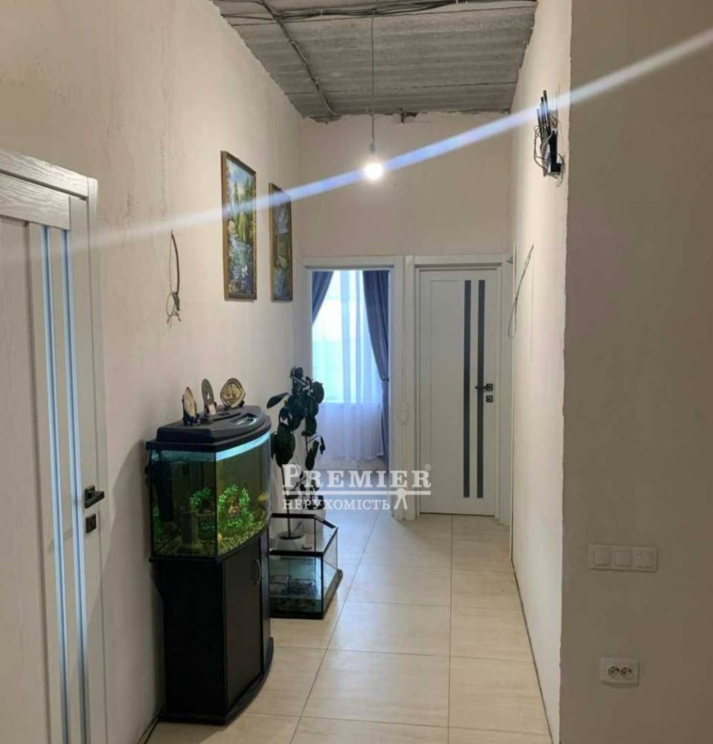 Пропонується до продажу двоповерховий будинок площею 216 кв.м, у Фонтанці поряд із ТРЦ Рів'єра. На першому поверсі простора вітальня; кухня-студія; дві кімнати; коридори, котельня та санвузол. Великі панорамні вікна, є вихід на терасу та задній двір. Зроблено 80% ремонту, в спальнях встановлені радіатори, по будинку тепла підлога, необхідно доробити стелі та шпалери.