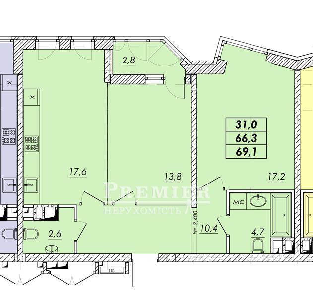 69.1 м2