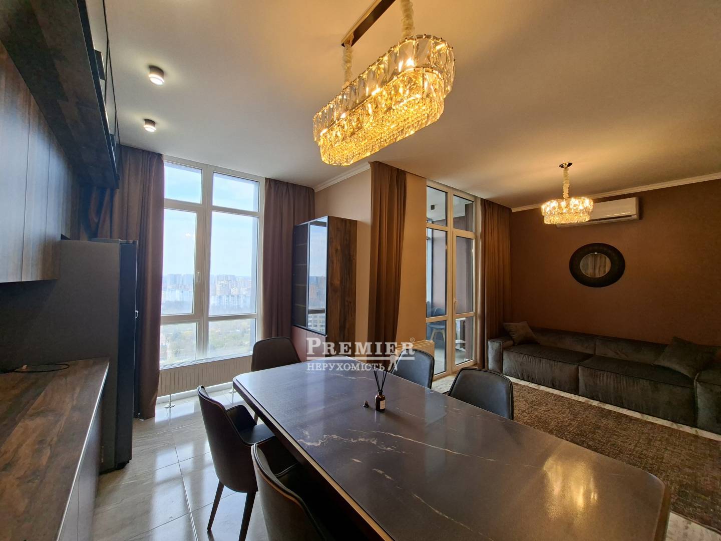 Квартира складається з просторої кухні-студії з виходом на лоджію, звідки відкривається чудовий вид на парк і місто, а також затишної спальні. У парадній встановлено два швидкісні пасажирські ліфти та один вантажний.