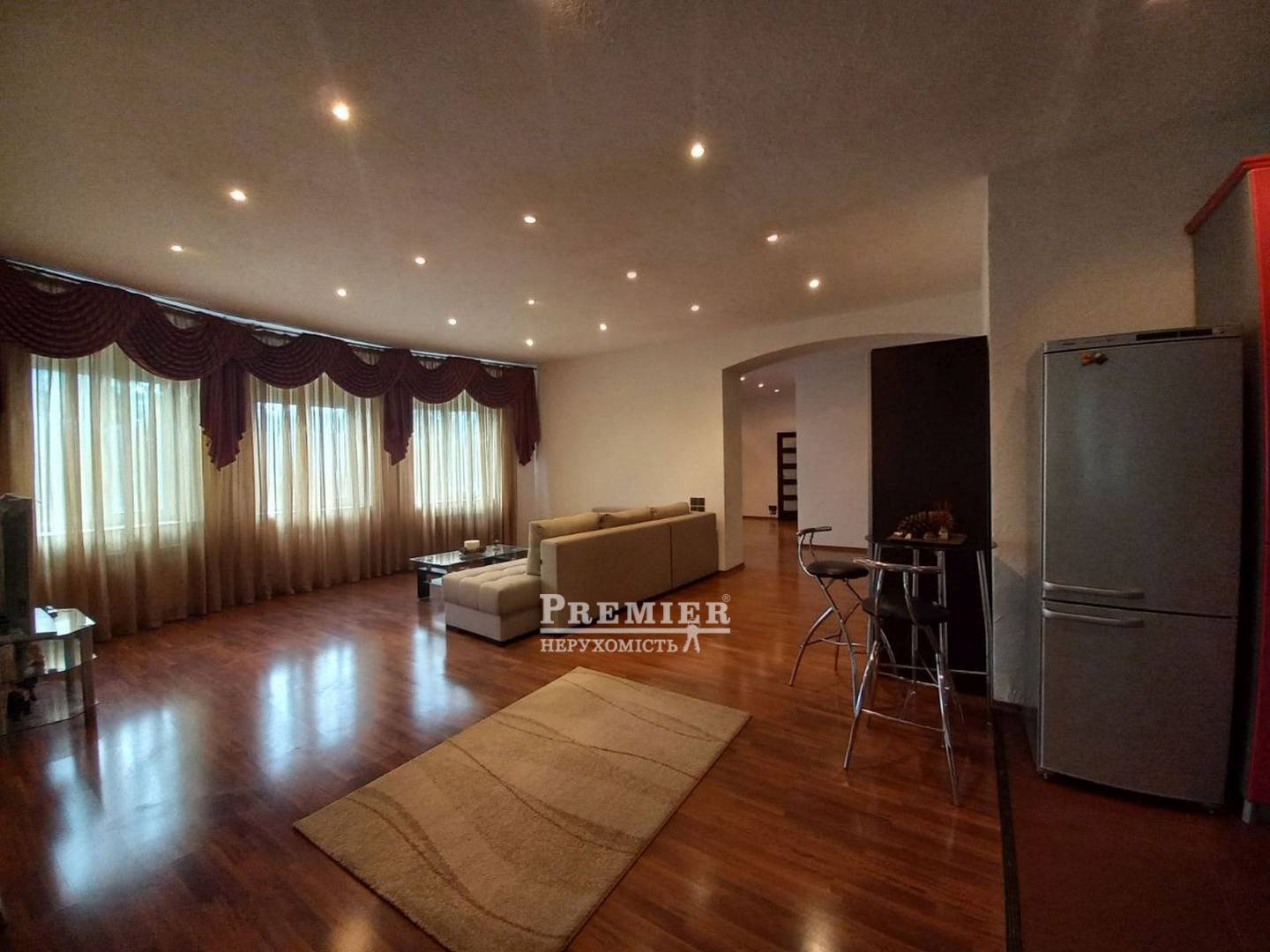У квартирі велика кухня-вітальня, всі кімнати просторі, велика лоджія 14 метрів. Можливо перепланувати у 3 кімнати. Меблі та техніка. На вікнах автоматичні ролети. Висота стелі 3м.