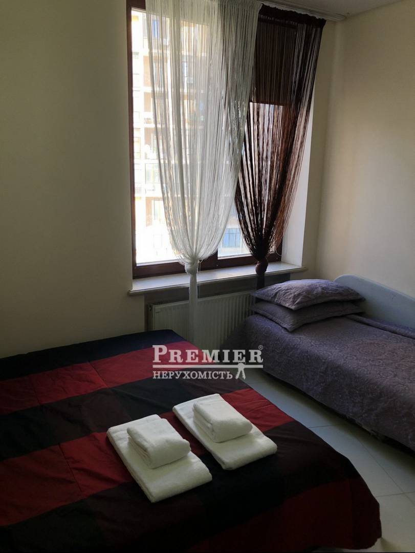 Квартира 78,2 кв.м. розпланована на велику вітальню з кухнею 27 кв.м, дві окремі спальні 20 та 11 кв.м, роздільний санвузол. Квартира велика тепла та світла. Гарний ремонт з дорогих якісних матеріалів. Закрита територія, що охороняється, консьєрж на вході. Чудове розташування будинку, вихід на дві вулиці (Тіниста і Генуезька). Близько до моря. Магазини, супермаркети, школа, садок, пошта, парк, пляжі - все в пішій доступності