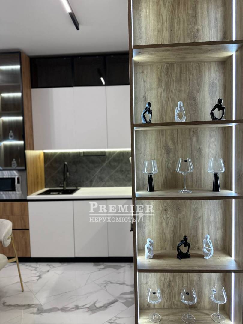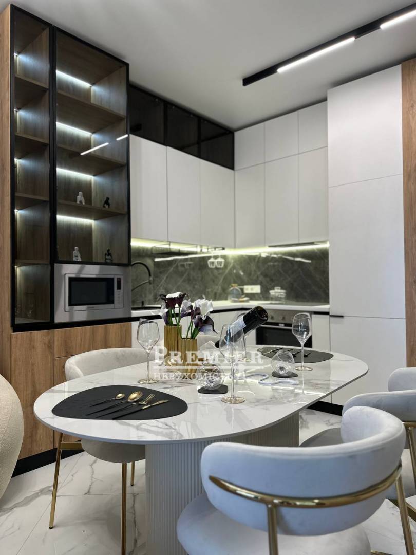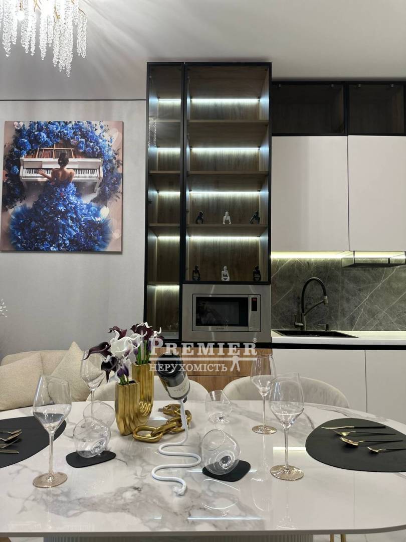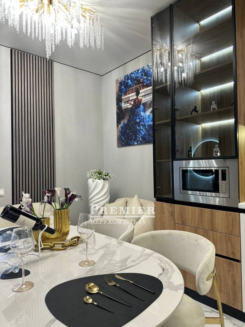 У квартирі виконаний сучасний дизайнерський ремонт у світлих тонах, який наповнює простір світлом та відчуттям затишку. Все продумано до дрібниць – квартира повністю укомплектована меблями та якісною технікою, можна заїжджати одразу після покупки.