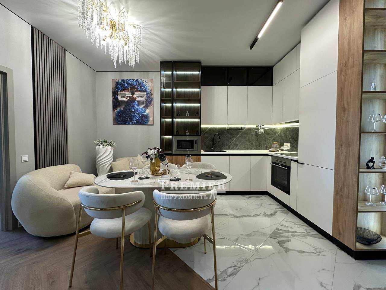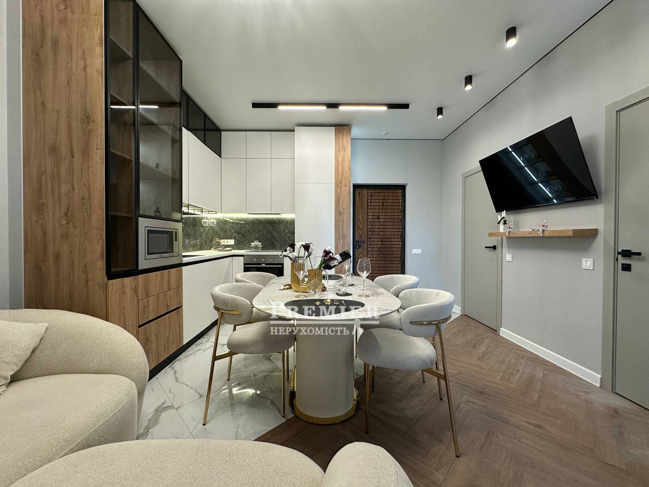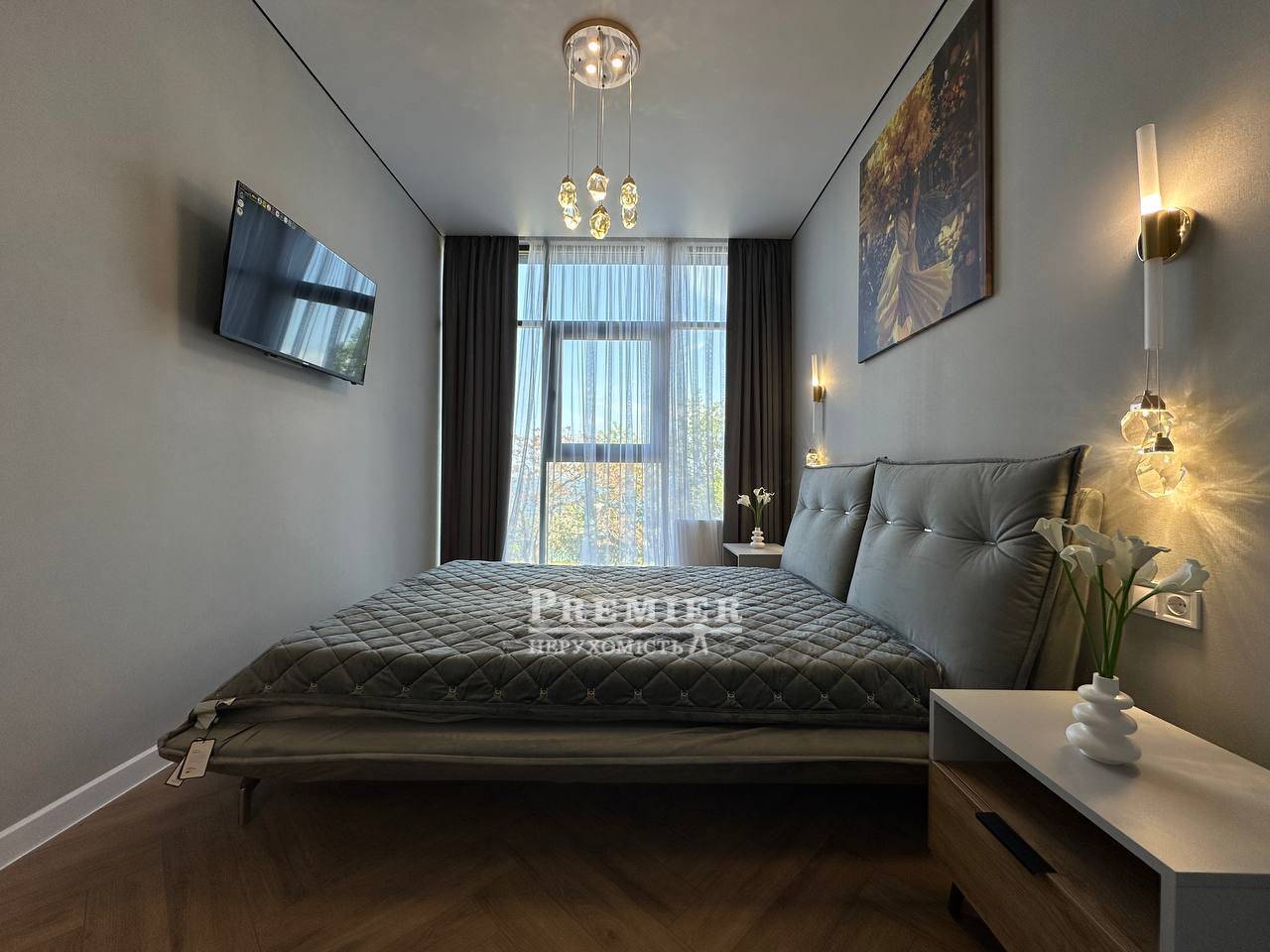 У квартирі виконаний сучасний дизайнерський ремонт у світлих тонах, який наповнює простір світлом та відчуттям затишку. Все продумано до дрібниць – квартира повністю укомплектована меблями та якісною технікою, можна заїжджати одразу після покупки.