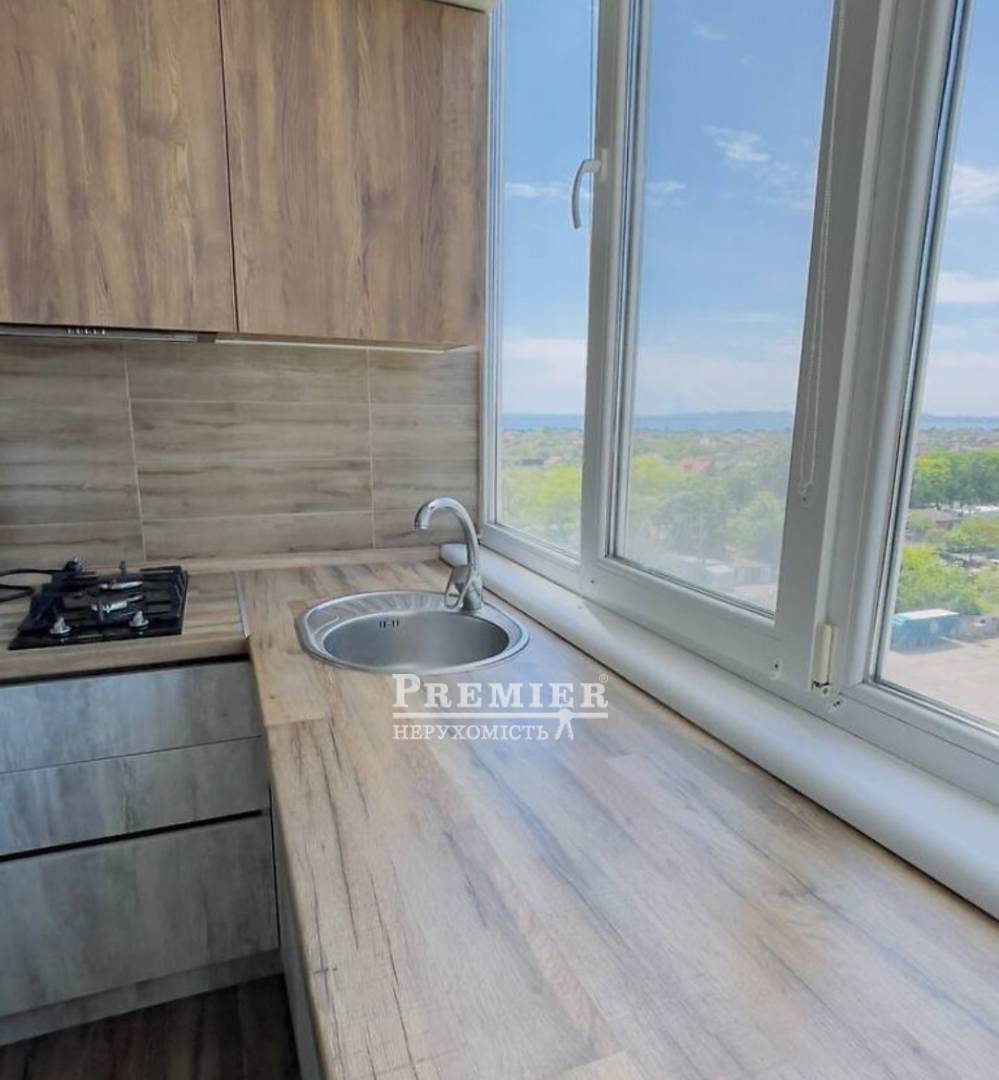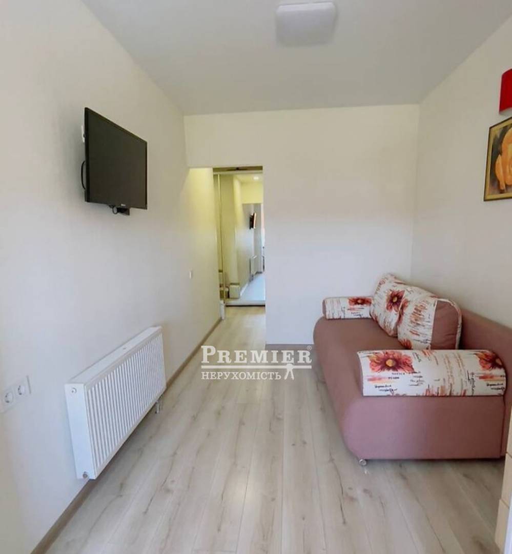Продається 2-кімнатна квартира у Фонтанці з чудовим видом на море. Квартира поділена на дві смарт квартири. Одна загальною площею 21 кв.м, інша 26 кв.м. Виконано якісний ремонт. На кухні вбудовані меблі.