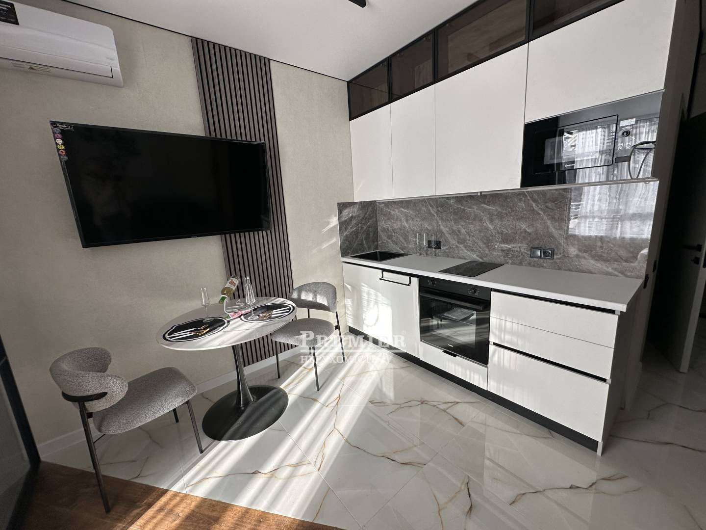 Пропонується до продажу однокімнатна квартира в новому житловому комплексі бізнес-класу, в Аркадії. Виконано сучасний ремонт. Кухня-вітальня, суміщений санвузол. Вбиральня. Спальня. Красивий новий комплекс. Закрита територія, що охороняється. Красиві холи. Двір без машин. Тераси для прогулянок. За п'ять хвилин від моря. Відмінна пропозиція як для життя, так і під здачу. Телефонуйте. Ми вам її покажемо.