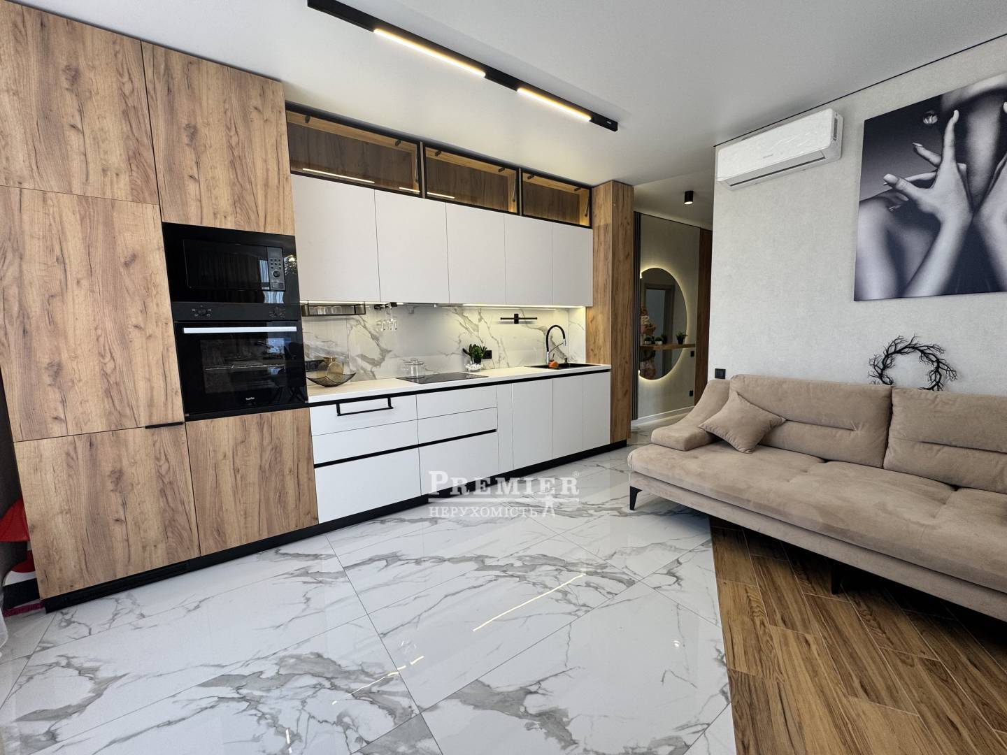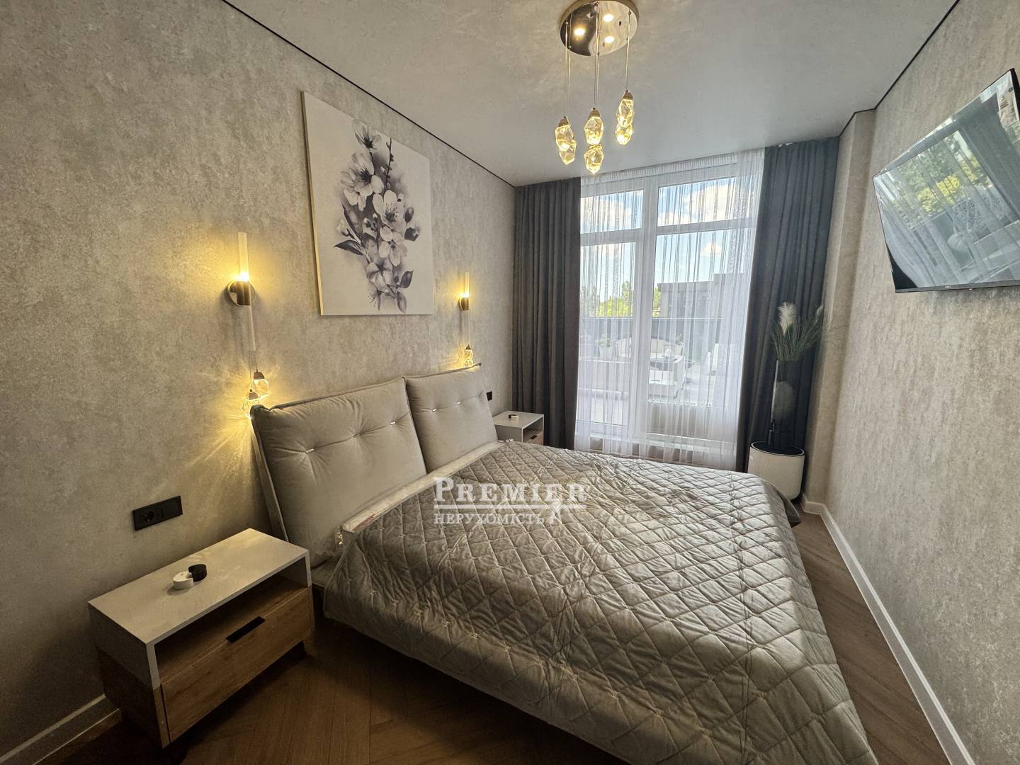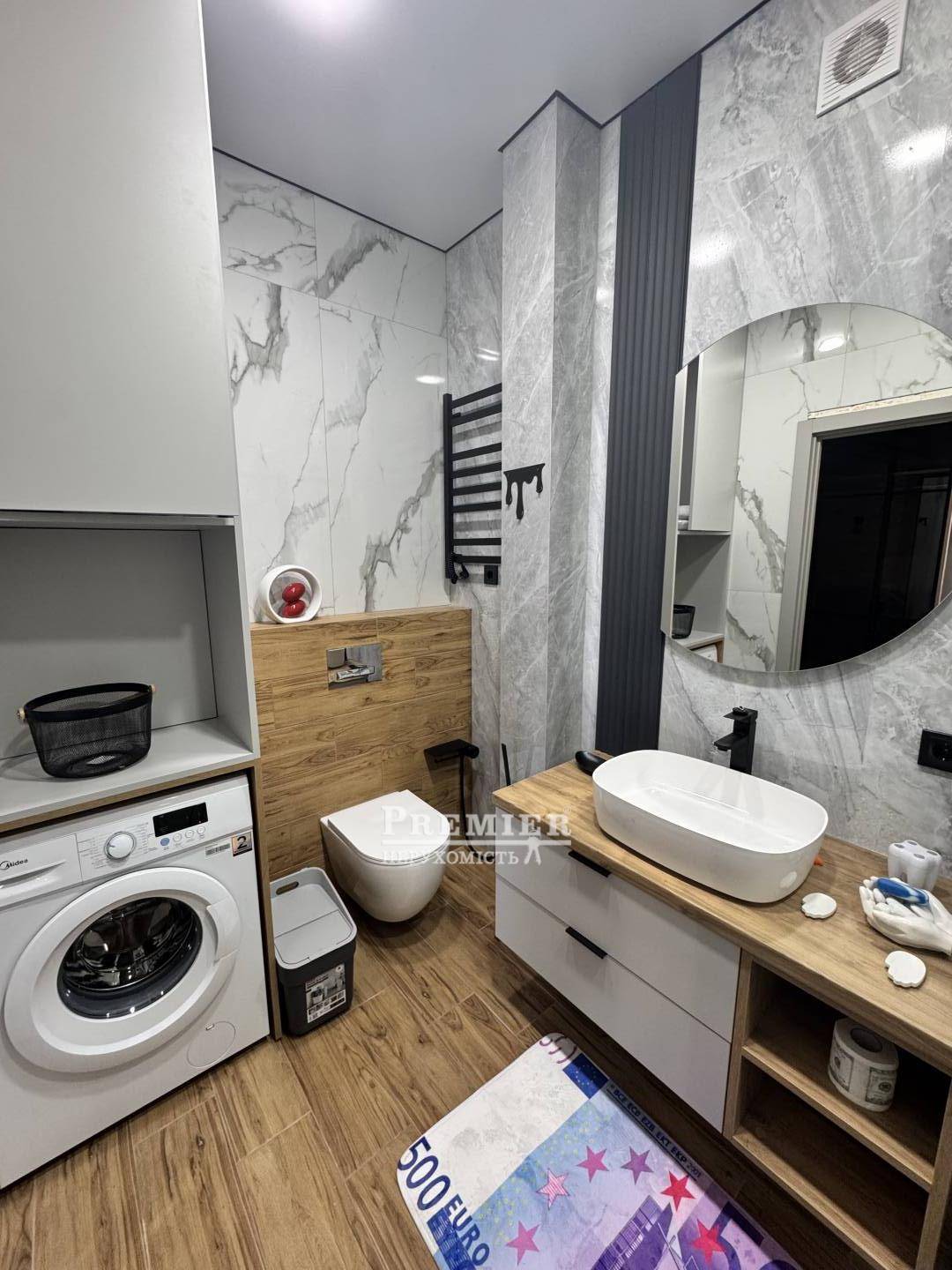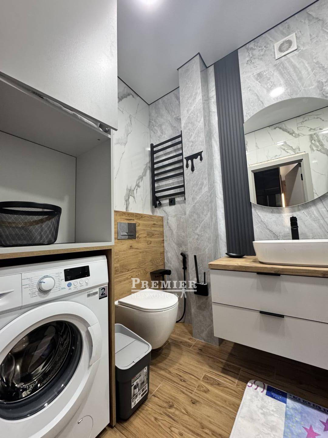 У квартирі виконано якісний ремонт із використанням сучасних матеріалів. Повністю укомплектована всім необхідним для комфортного проживання: меблі, техніка, система кондиціонування.