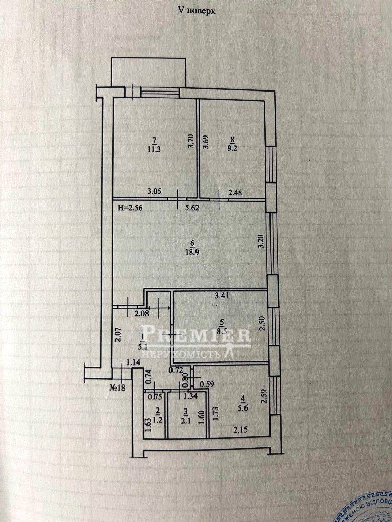 Загальна площа дозволяє створити комфортний простір для великої родини. Санвузол повністю фанерований, після ремонту. У кімнатах — натуральний паркет, на кухні та коридорі — ламінат. Є засклений балкон.