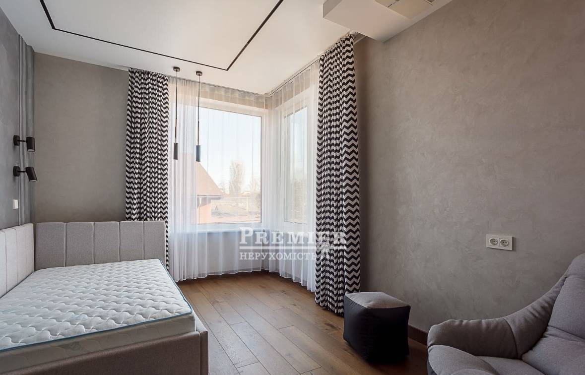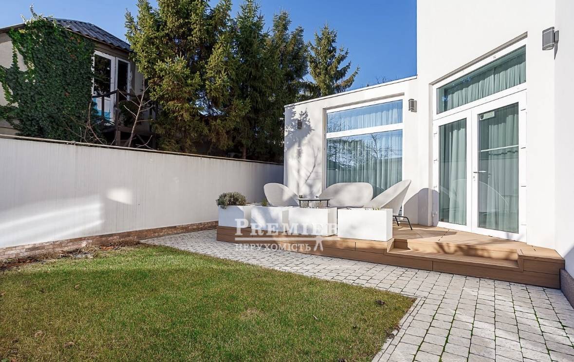 Будинок двоповерховий з гаражем на 50 м², терасою на даху 60 м², зоною барбекю та ландшафтним дизайном. Сучасний ремонт, ніхто не проживав. Встановлено систему "Розумний дім", відеоспостереження, охорона, автоматичний полив, дизель-генератор. Підключені міські комунікації.