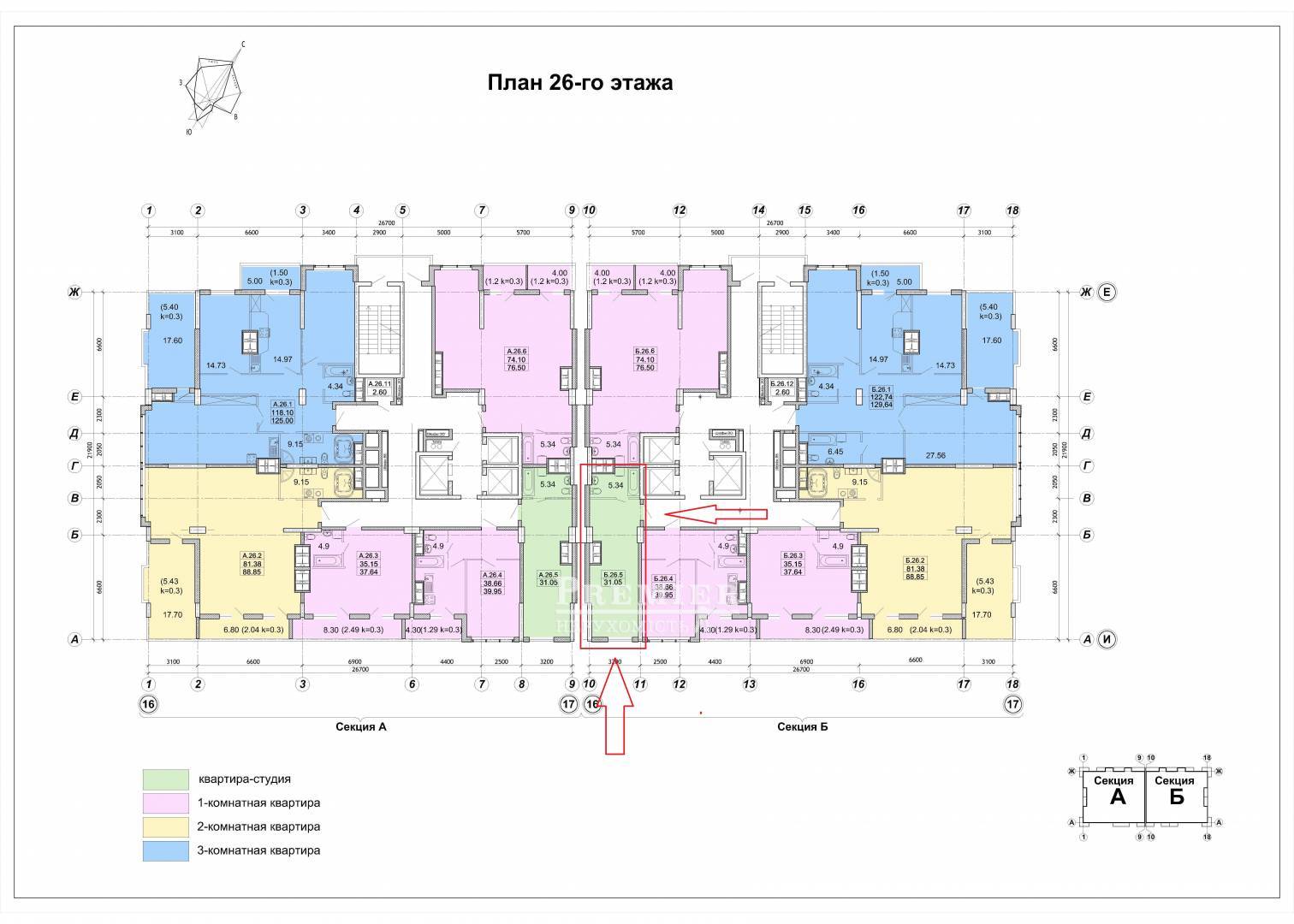 Общая66.5 м2