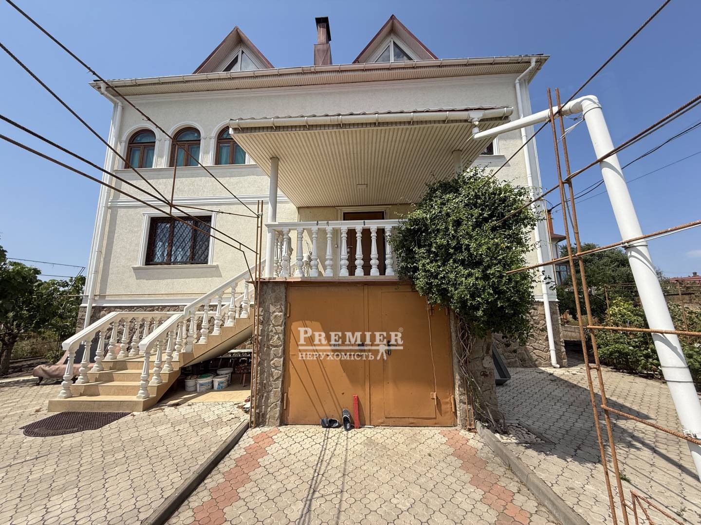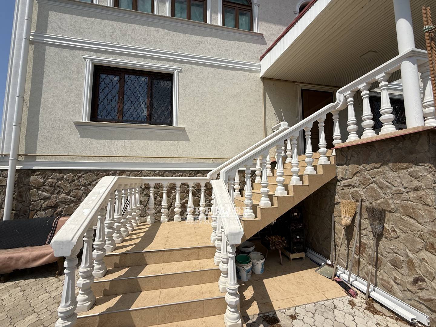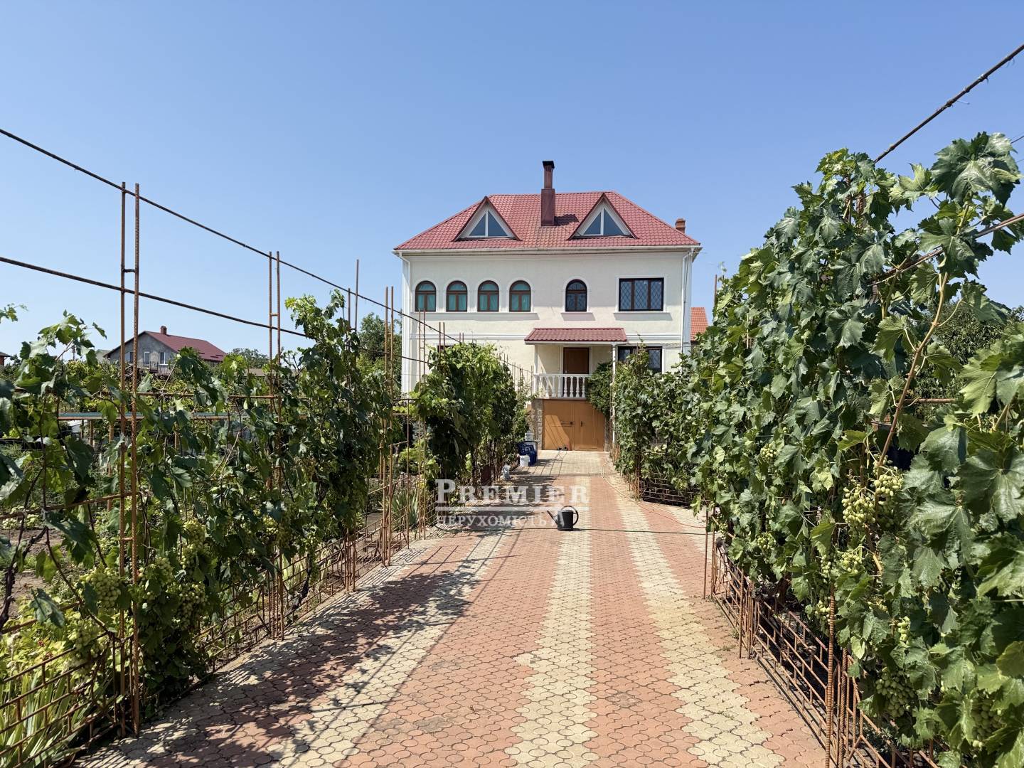 Будинок побудований з натурального черепашника – екологічно чистого та довговічного матеріалу. Стіни утеплені для збереження тепла взимку та прохолоди влітку. Фасад прикрашений декоративною штукатуркою, що надає будинку стильний та сучасний вигляд. Дах покритий металочерепицею - надійним і довговічним матеріалом.