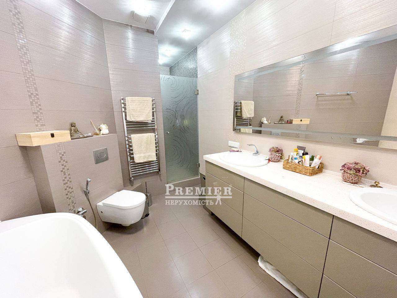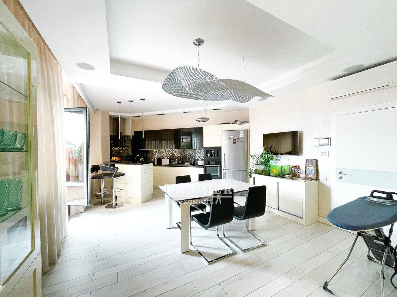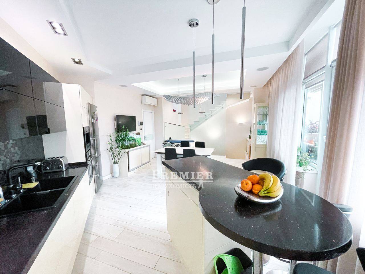 Ласкаво просимо до квартири мрії! Ця прекрасна 3-х рівнева квартира, з виходом на терасу розміром 60 м2 і дивовижним видом на місто. На першому поверсі знаходяться 2 дитячі кімнати та майстер спальня 3 вбиральні. На другому поверсі кухня їдальня з виходом на терасу. На терасі скління Паритет, автоматизована маркіза з датчиком погодних умов, система вентиляторів та туманних розпилювачів води, вбудована зона барбекю, терасна дошка – бразильський бук, меблі з ротанга, На третьому поверсі розташований домашній кінотеатр, барна стійка бар холодильник. На кожному поверсі є санвузол ванна та душова. По всій квартирі встановлена система Розумний будинок. Авторський ремонт. Відеоспостереження, пожежна система, охорона, акустика у всій квартирі. Плитка та сантехніка, меблі провідних світових брендів Італії та Іспанії. Чудова шумоізоляція від сусідів. У будинку є паркінг, навпроти будинку гостьова парковка. Будинок розташований в парковій зоні-Парк Перемоги У Будинку охороняється двір із закритим дитячим майданчиком.