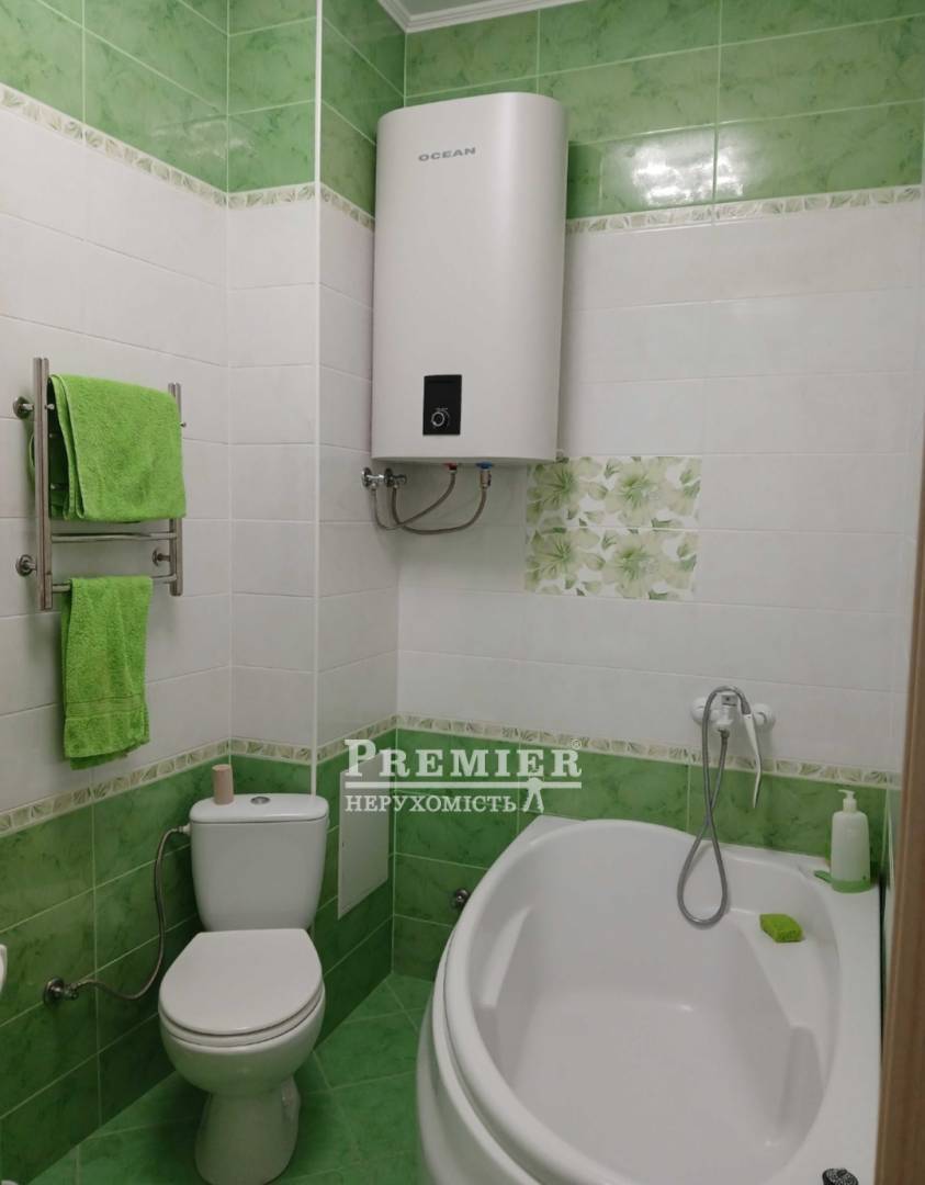 У продажу однокімнатна квартира із зонуванням на спальню та гостину, знаходиться на 8 поверсі 14 будинку. Кімната 30 метрів, площа кухні 11,5, ванна кімната 5 метрів, коридор, балкон. Висота стелі 3 метри. Ремонт 5 років. У квартирі залишається все, що є на фото, вся меблі, і вся техніка: два дивани, три шафи, кухонні меблі, два кондиціонери, духовка, плита, витяжка, холодильник, бойлер, телевізор, пральна машина. Квартира має лічильники на воду та тепло, проведено інтернет та домофон. Будинок має свою котельню та свій тариф на тепло, що змінюється в залежності від кількості газу, потрібного для опалення будинку в той чи інший період. У будинку діє ОСББ, рішення щодо всіх тарифів приймаються всіма власниками на загальних зборах. У кожному корпусі будинку по два ліфти - вантажний і пасажирський, є комори (купуються окремо), дві дитячі майданчики, поштомат Нової пошти, мангальна зона. Школи та магазини у пішій доступності.