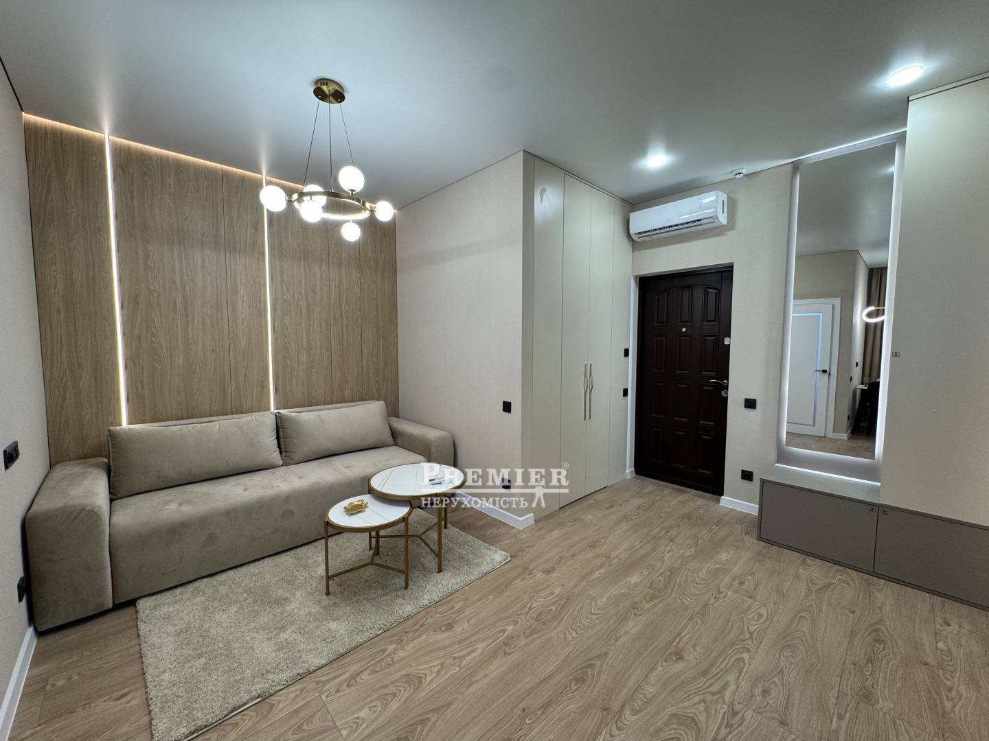 Продається стильна квартира в ЖК «61 Перлина», 9 поверх. З вікон відкривається гарний вид на іподром та затишний двір. Загальна площа – 42,9 м². Зручне планування: окрема спальня та кухня-студія з виходом на балкон, звідки відкривається прямий краєвид на іподром. При вході — простора вбиральня, продумано багато місць для зберігання. Санвузол з ванною, теплими підлогами та прально-сушильною машиною. Квартира повністю укомплектована якісними меблями та технікою: посудомийна машина, вбудований холодильник, мікрохвильова піч, духова шафа, варильна поверхня, смарт-ТВ, кондиціонер. Передбачено виведення під резервне харчування. На стінах — шпалери, що миються, і сучасні стінові панелі. Стан «заходь і живи».