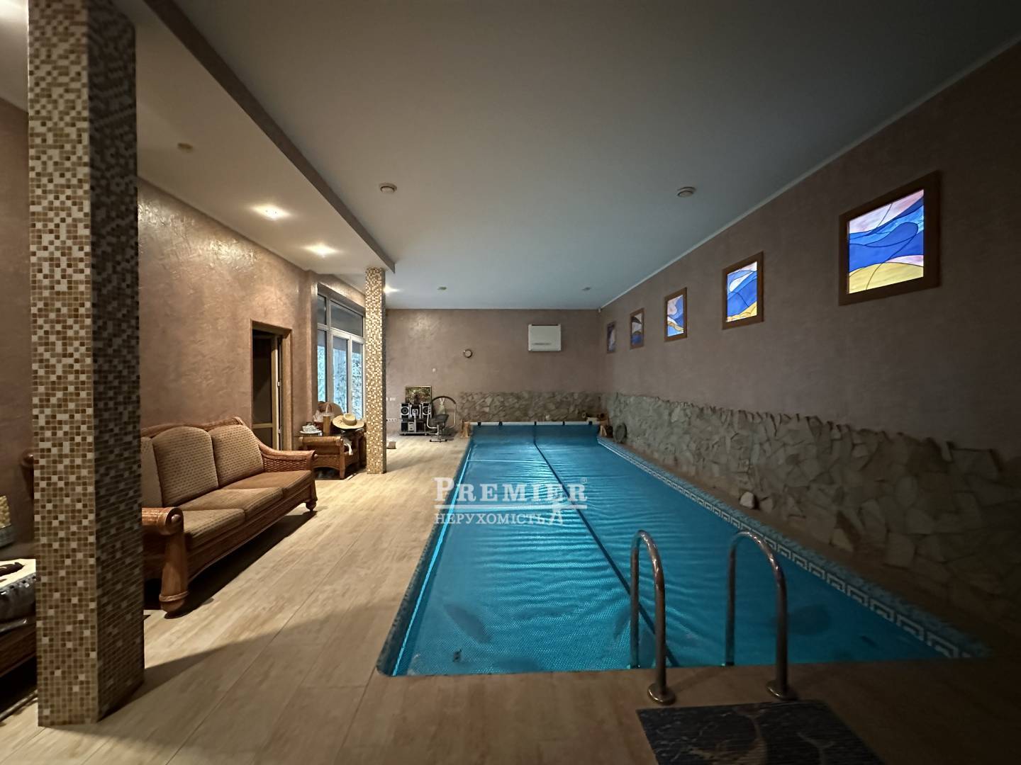 • Два басейни: критий басейн у будинку (3×8 м з підігрівом) та відкритий басейн у дворі